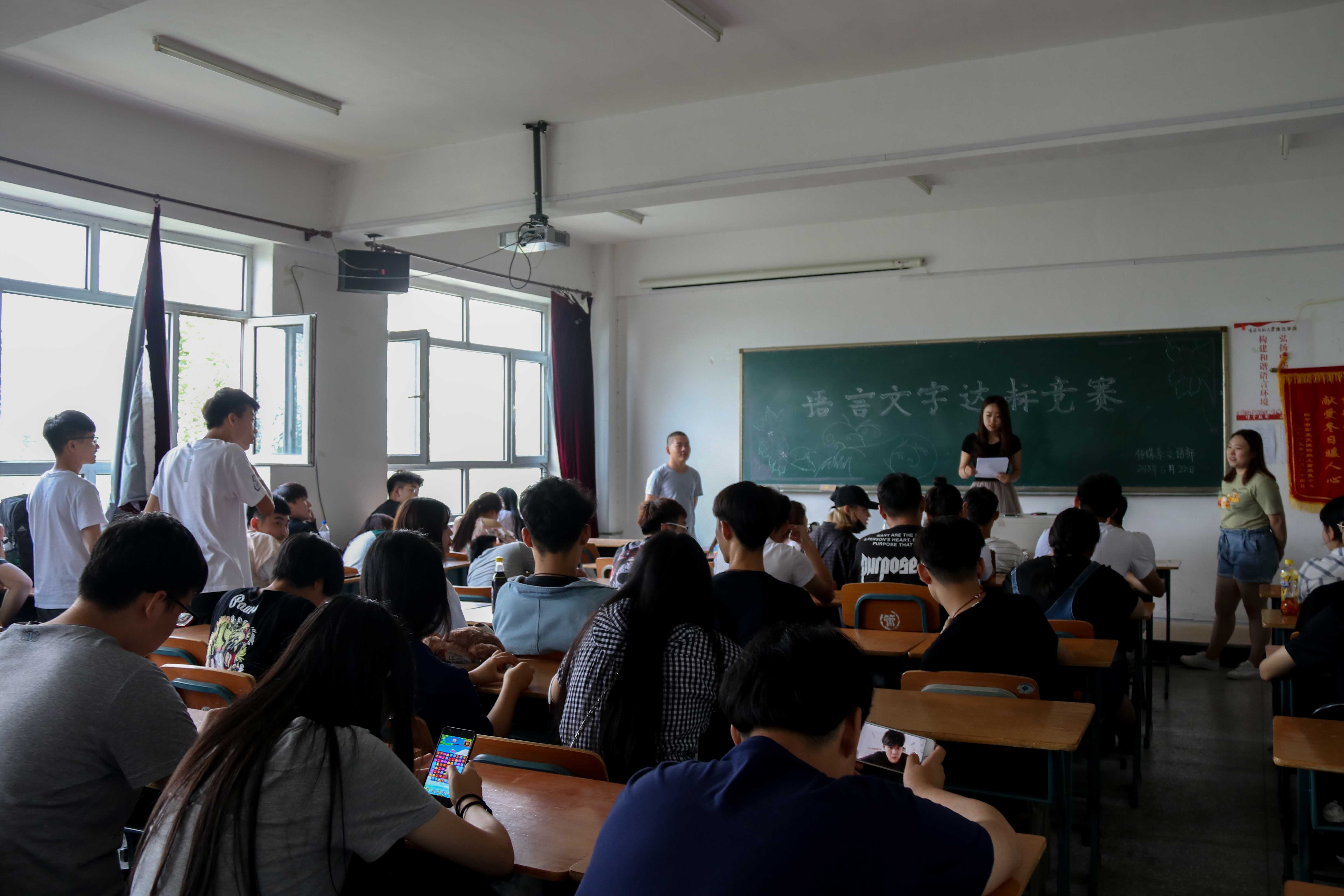 为了积极普及国家语言文字规范标准,努力提高师生的语言文字规范意识和应用能力。传媒系文语部于2018年6月28日,在3514教室举办了语言文字达标竞赛活动。本次竞赛由张莹霞主持,分团委副书记聂洪波、学生会副主席张莹霞、刘辉进行打分,文语部部员核算成绩。