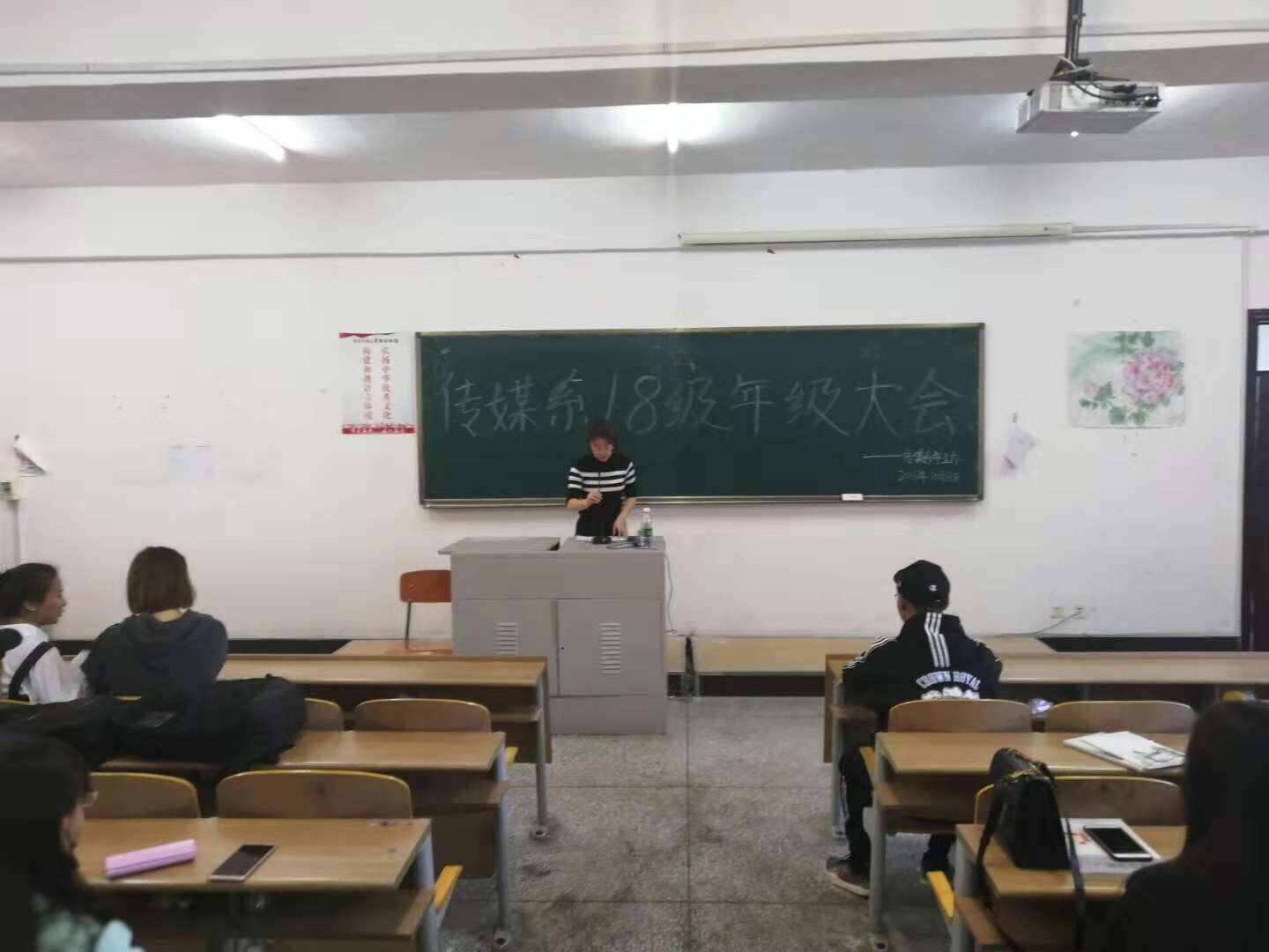 2018年10月8日午,由传媒系学工办主办的18级年级大会于第三教学楼3420教室召开。我系辅导员老师王天明,辅导员助理张金凡,舍务部部长王强以及18级139名同学参加本次会议。