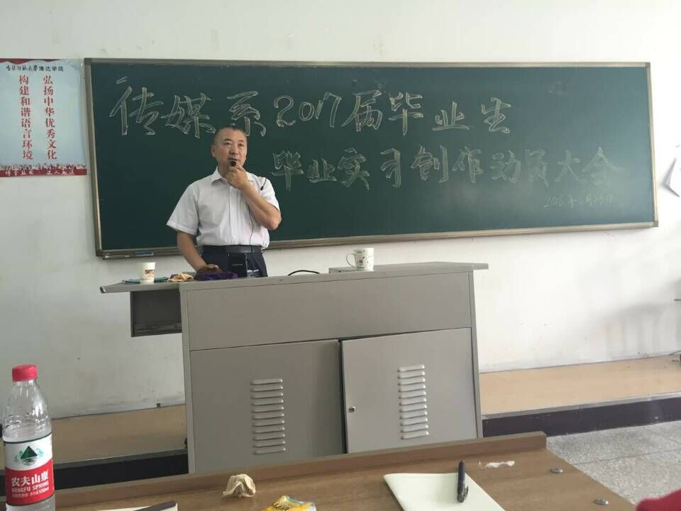 6月23日下午,我系在3420教室召开2017届毕业实习创作动员大会。出席本次会议的有传媒系主任高峰、教学主任姜洪德、辅导员张明亮、专职教师马兢以及传媒系2017届全体学生。本次会议由姜洪德老师主持。