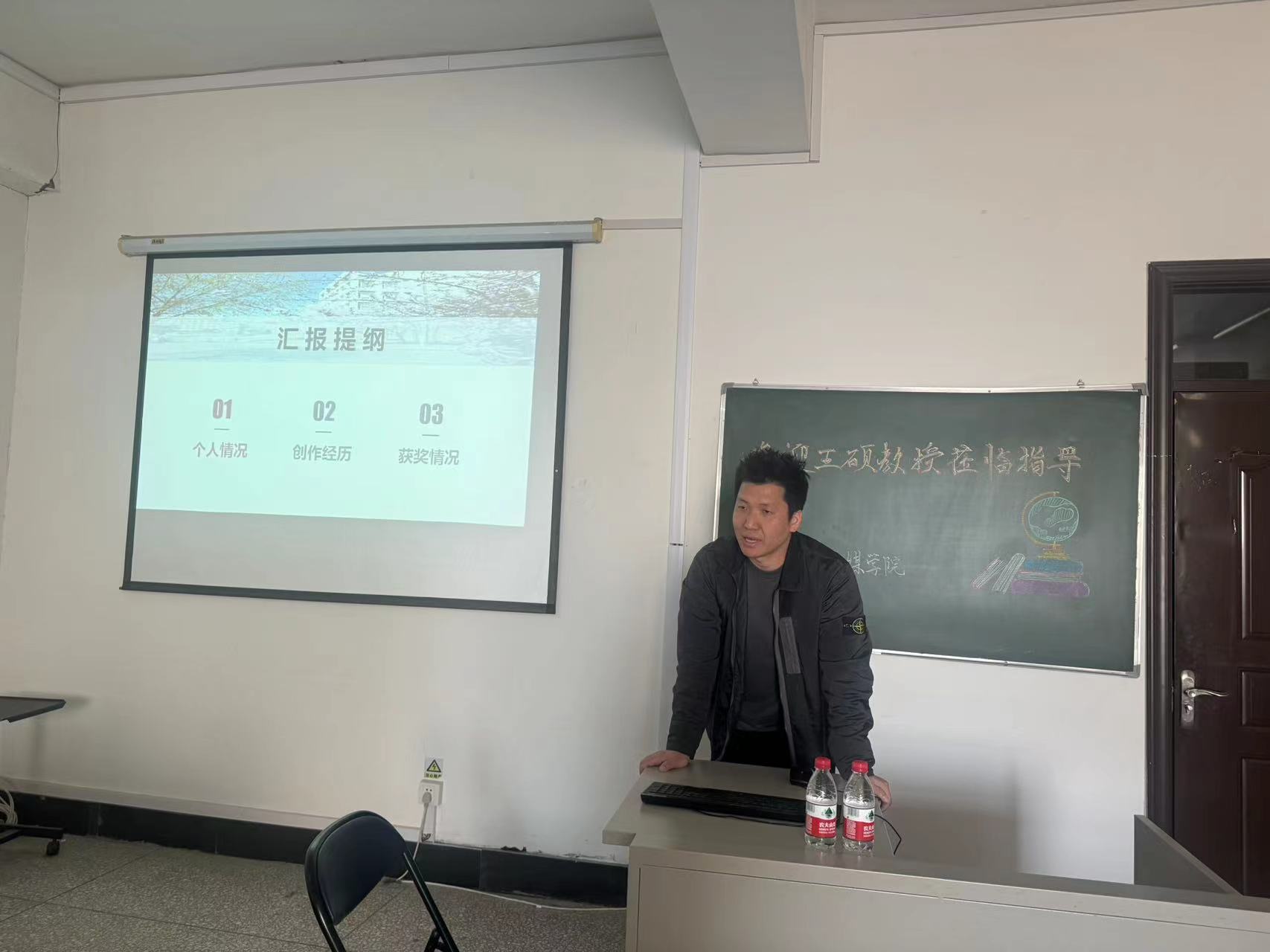 之后王副教授与各位教师探讨具体问题,王副教授最后建议大家要实实在在创作,教师要有自己的作品,也要指导学生创作作品。