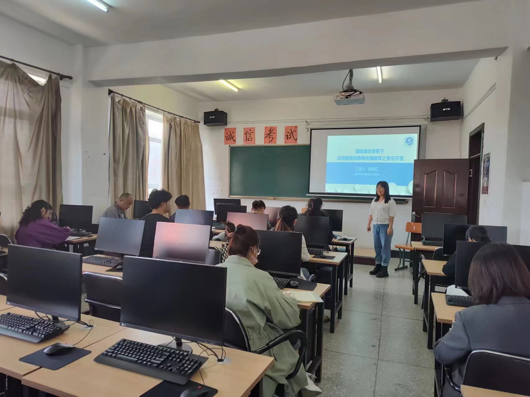 2023年9月27日下午14:00,我院在3407教室组织了本学期第二次教研活动。这次活动以“媒体融合背景下应用型高校新闻传播教育之变与不变”为主题,由传媒学院侯淑红教师主讲。 侯老师对媒体融合概述,面临的挑战,我国新闻传播教育之变,我国新闻传播教育之不变四个方面进行了讲解。当新闻作为产品产出时对教师队伍的建设以及学生的专业素养有更高的要求。侯老师表示,媒体融合背景下面对新闻传播环境的多样化及其挑战对专业任课教师而言提出了更高的要求。