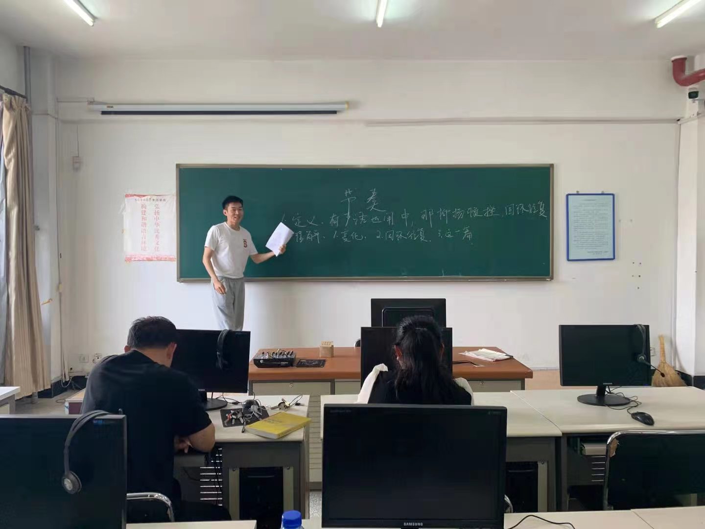 为了更好地提高教学质量和教师的教学水平,2021年7月7日,我院在3508教室举办了2021-2022-1学期“上新课”教师试讲活动,参加本次试讲的老师有王双,白则明,官旭阳、曹雨露四位老师,试讲的课程分别为《数字媒体制作软件1/影视剪辑1》,《影视照明技术》、《非线性编辑制作1》、《普通话发声基础》。传媒学院副院长马兢、专业负责人任宏良老师参与了此次活动。