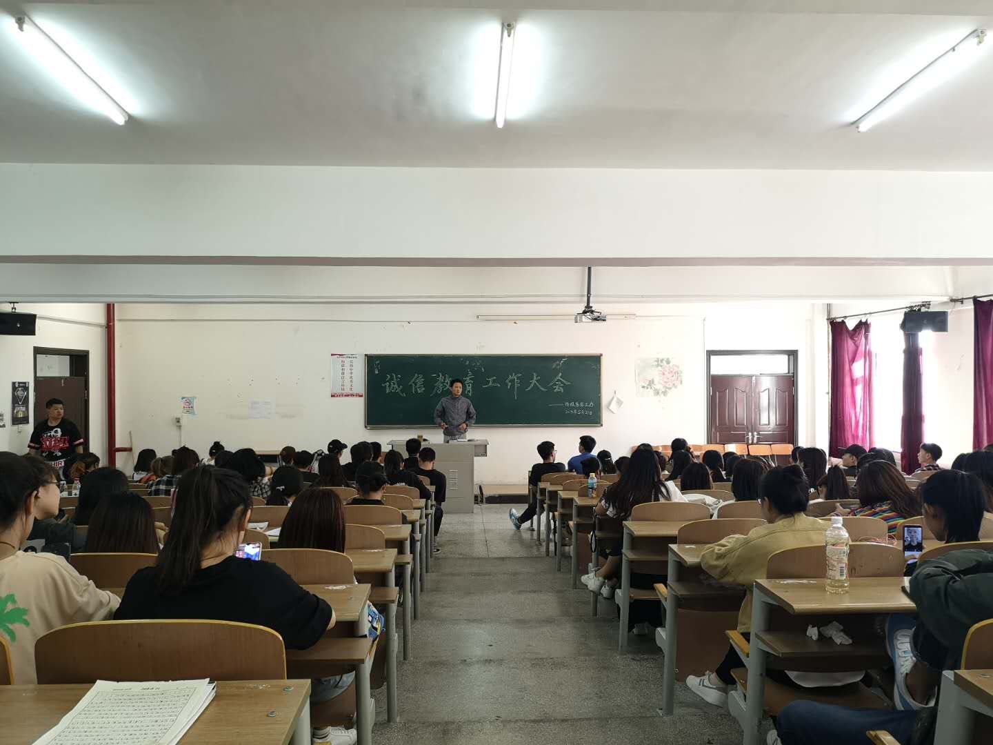 5月31日下午三点四十,我系于3420教室召开了“关于做好2019年加强高校在校生管理开展诚信教育工作方案”大会,辅导员张鹏飞老师莅临指导,18级全体学员参加会议。