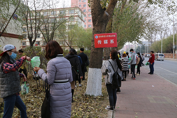 11月4日下午,传媒系在师大社区附近的街道开展了义务劳动活动。此次活动由传媒系学生会主席崔佳麒和社团联合会主席张宏业带领,15级传媒系全体学生参加。