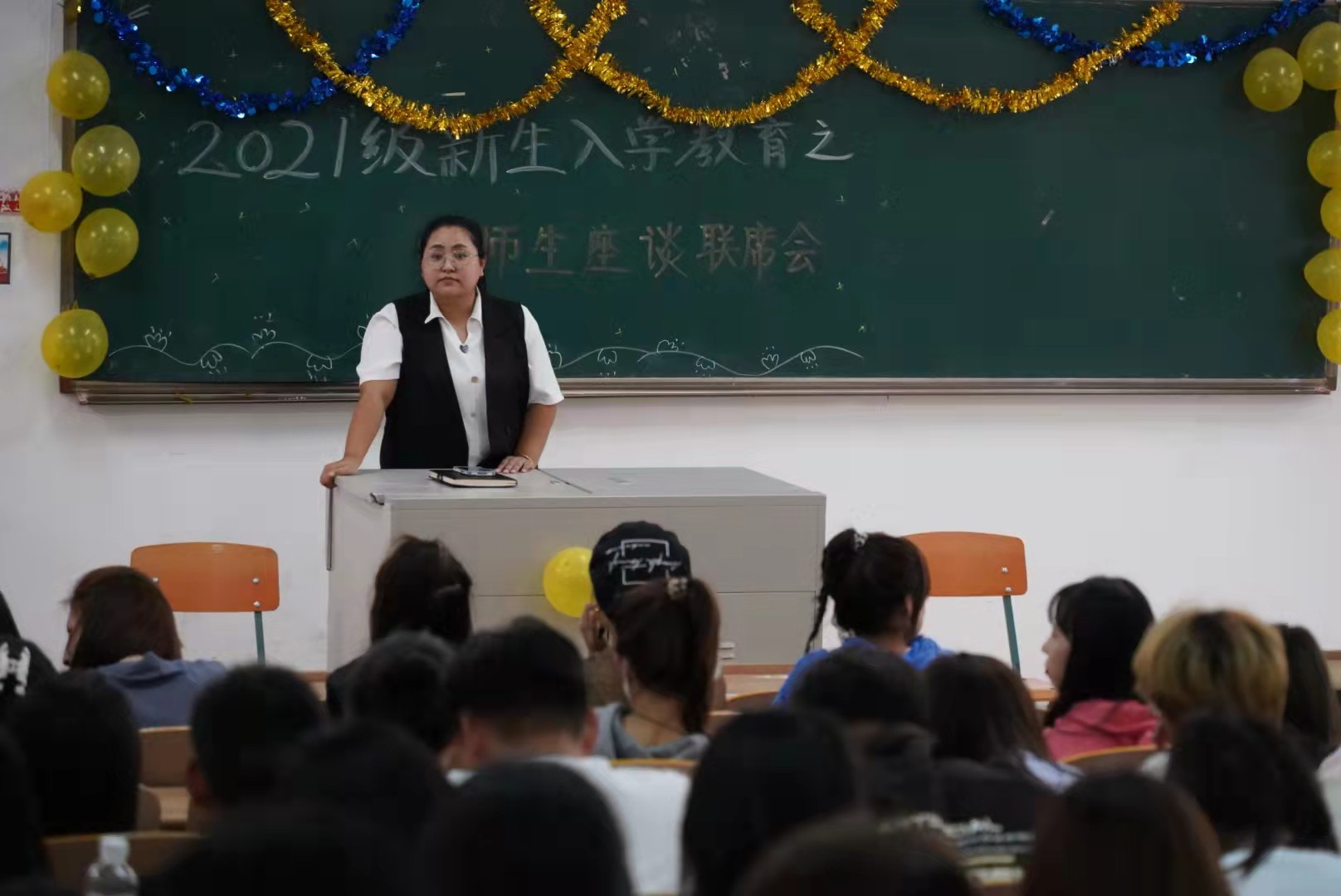 2021年9月15日15时30分,吉林师范大学博达学院传媒学院副院长马兢老师与数字媒体技术专业负责人任宏良老师,在老校区3420教室面向2021级同学开展了新生入学教育之师生联席座谈会。