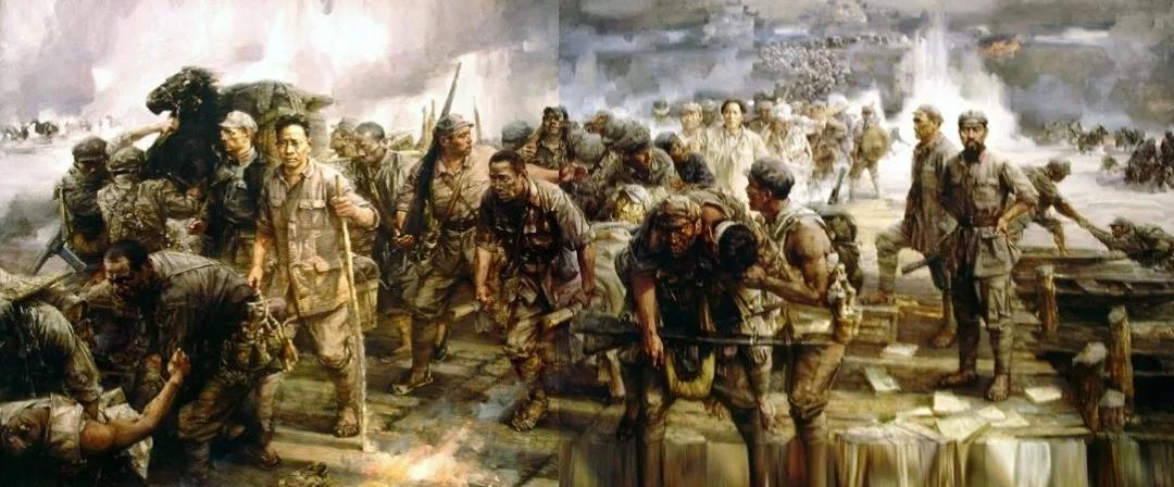 今天传媒学院为大家分享的是由油画家张庆涛先生创作的《湘江·1934》,这幅画的背景来自于著名的湘江战役,湘江战役是中央红军突围以来最壮烈、最关键的一仗。