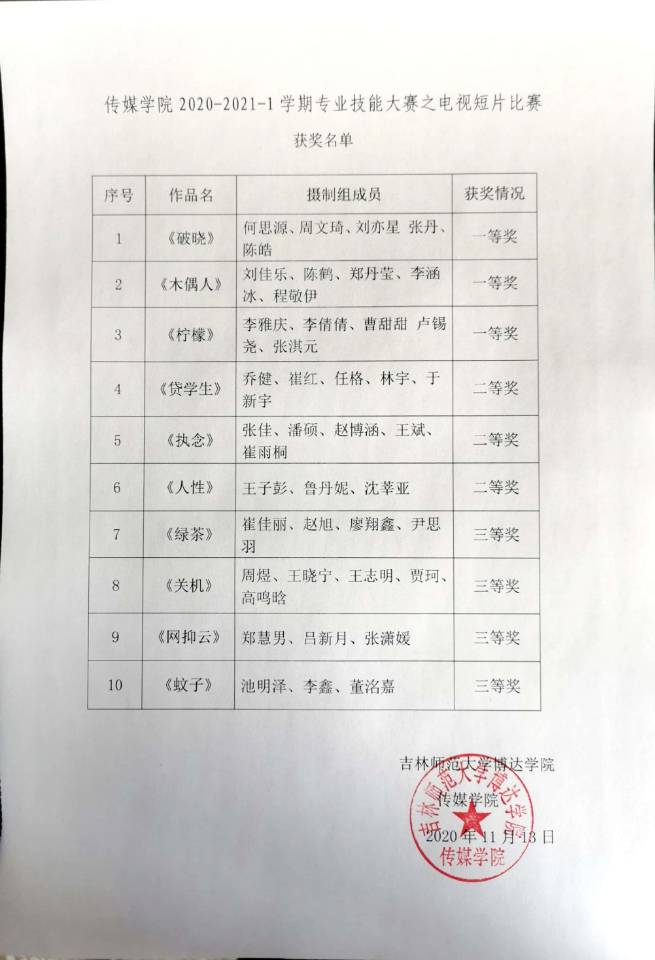本次比赛以传媒学院2018级广播电视编导和数字媒体技术专业的专业必修课《电视摄像技术》《非线性编辑》为依托,共选出一等奖3名,二等奖2名,三等奖4名, 本学期期初我院教师布置相关比赛内容,同学们认真学习电视节目制作,利用课余时间多次练习、实践。通过专业技能训练使同学们对电视节目的制作流程更加熟练,提高了视频、音频剪辑技巧,为学生剪辑电视节目打下坚实基础。