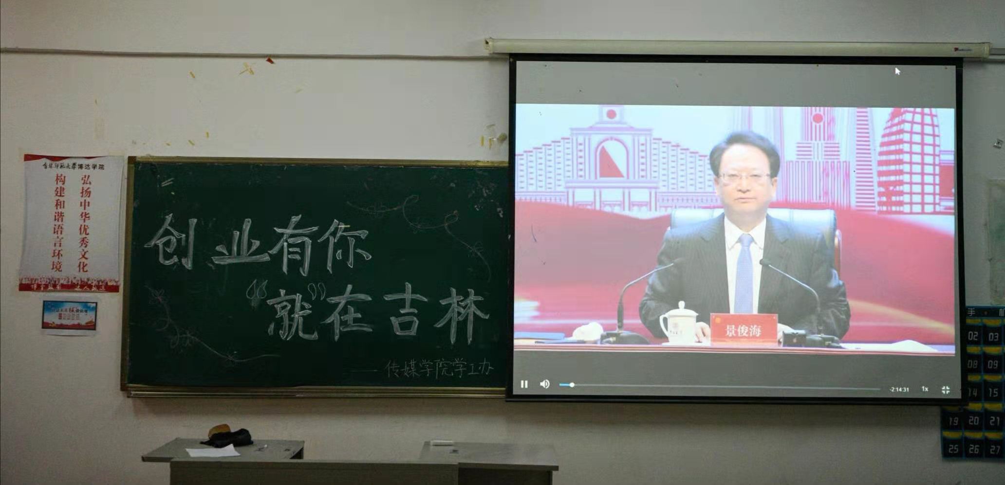 2021年4月8日晚18:30,2020届传媒学子在3420教室召开了“创业有你,就在吉林”的视频报告讲座