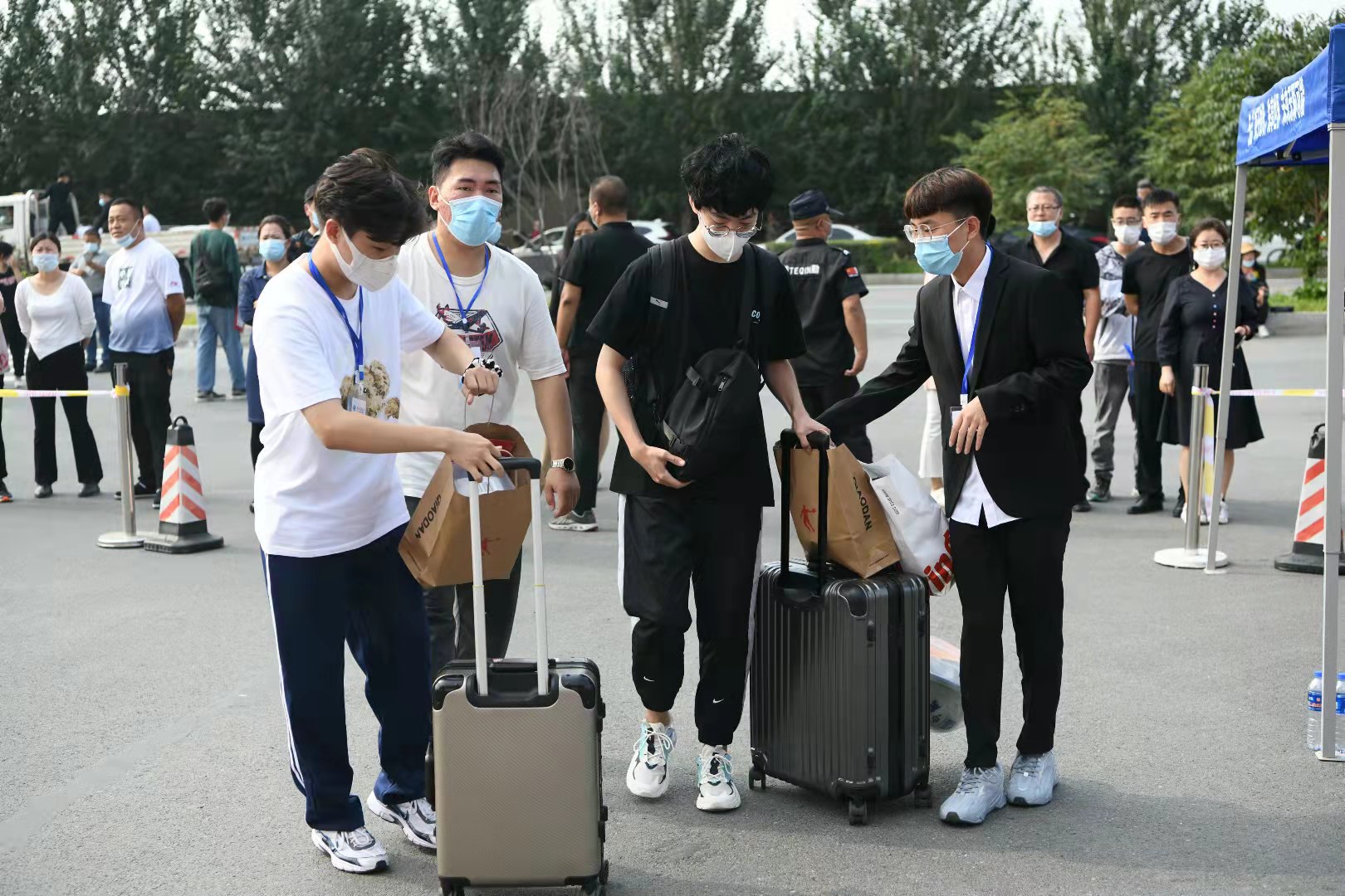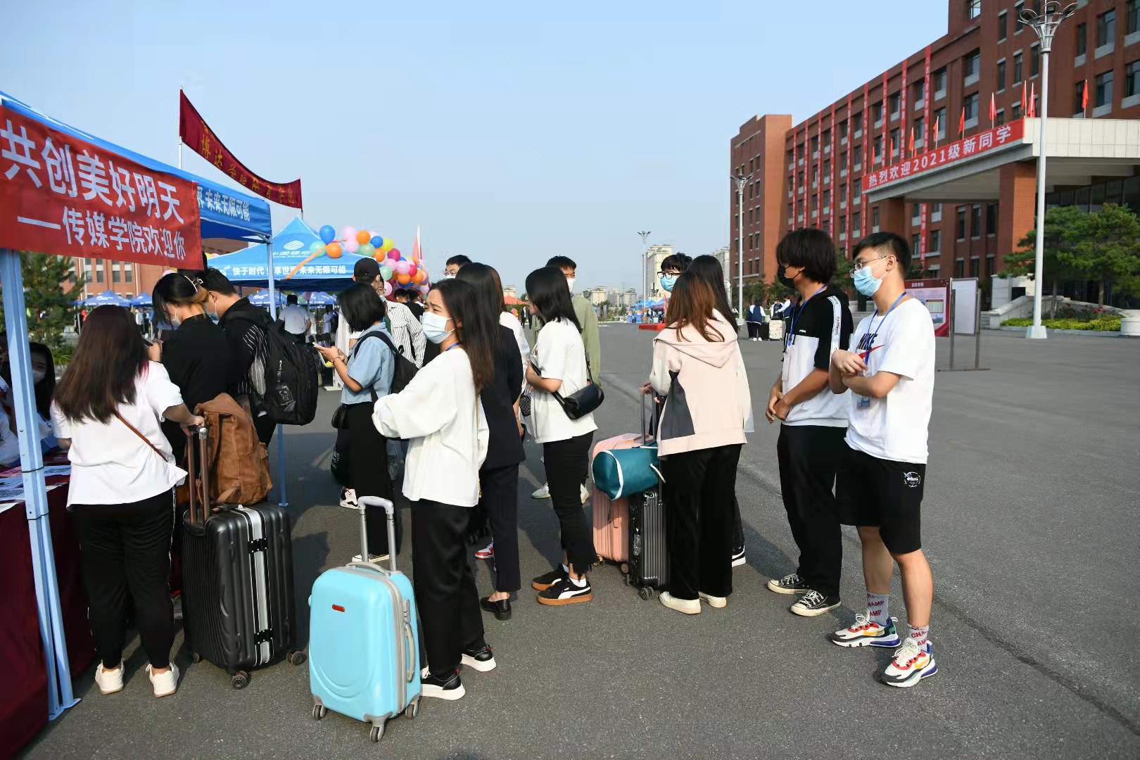 在校门口迎接新生的传媒学院的同学们热情的为萌新们拎行李并解答新生家长的各种疑问。带着他们经过疫情防控组的志愿者们为各位新生进行测温检查并对行李物品消毒处理的地方,并在校内再次进行核酸检测,确保入学期间的疫情安全。为更好地迎接新生的到来,传媒学院的志愿者们提前到达固定的站点,为萌新们做好引导、登记、搬运等服务工作。