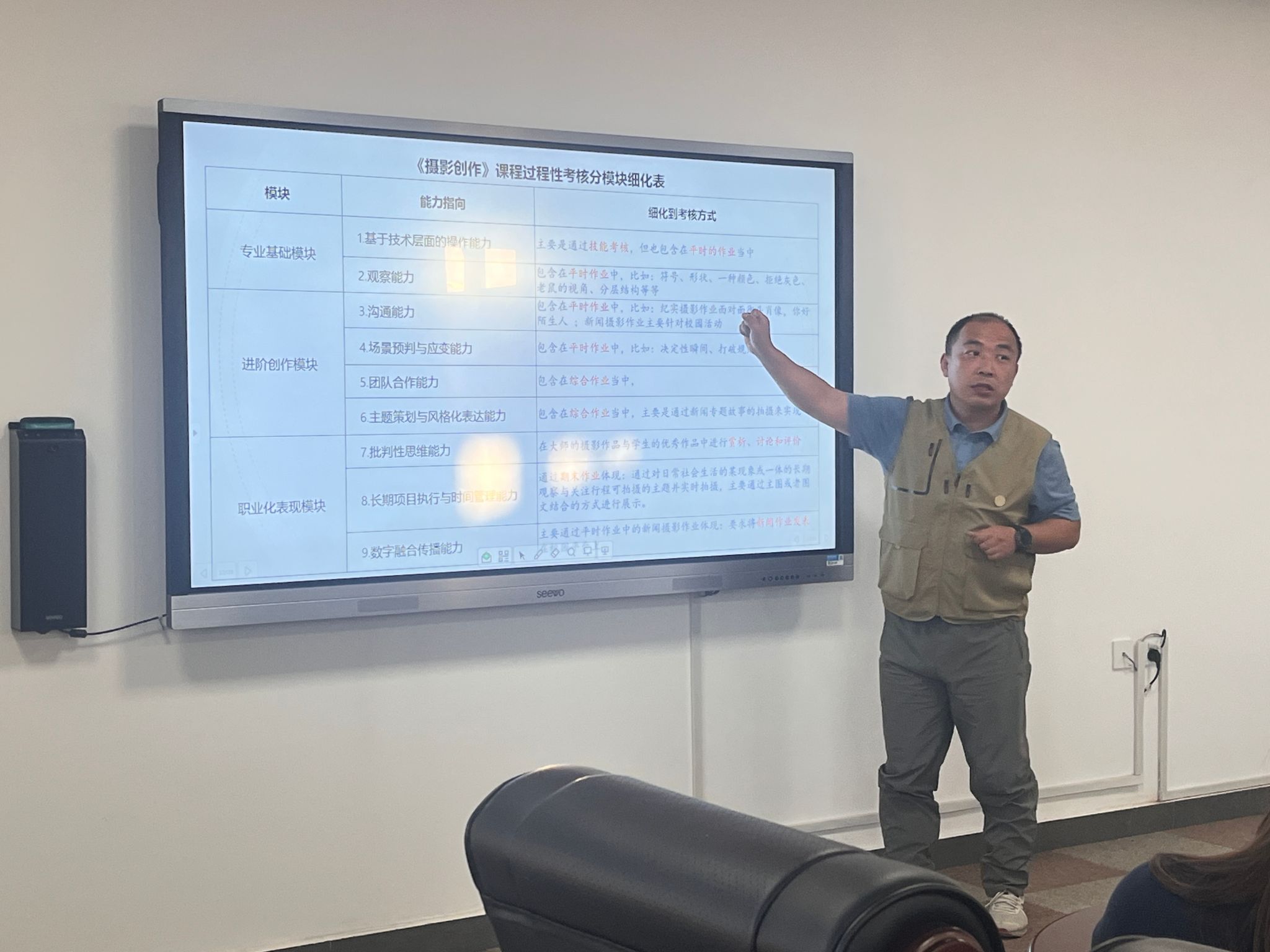 9月17日下午,传媒学院在图书馆510会议室举办本学期第一次教研活动,本次活动主题为“基于学生职业能力培养的过程性考核的实施——以广播电视编导专业《摄影创作》课程为例”,主讲人为任宏良老师。