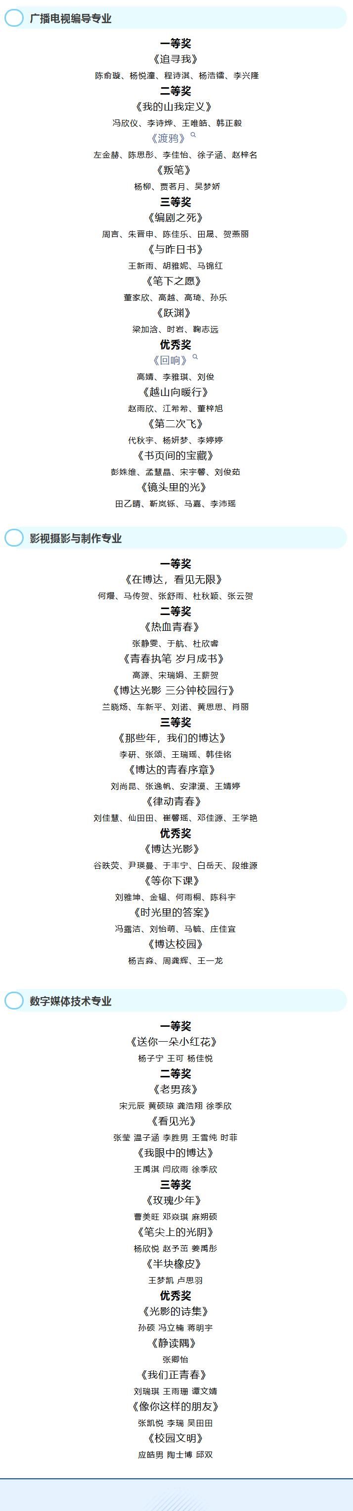 作品呈现环节后,教师评委团展开专业点评,既肯定了各团队在创意构思、技术运用与团队协作中的亮点,也针对镜头运用、叙事逻辑、音画配合等细节提出切实可行的改进建议,让学子们在交流中收获成长。经过激烈角逐,各专业分别评选出一、二、三等奖及优秀奖若干。