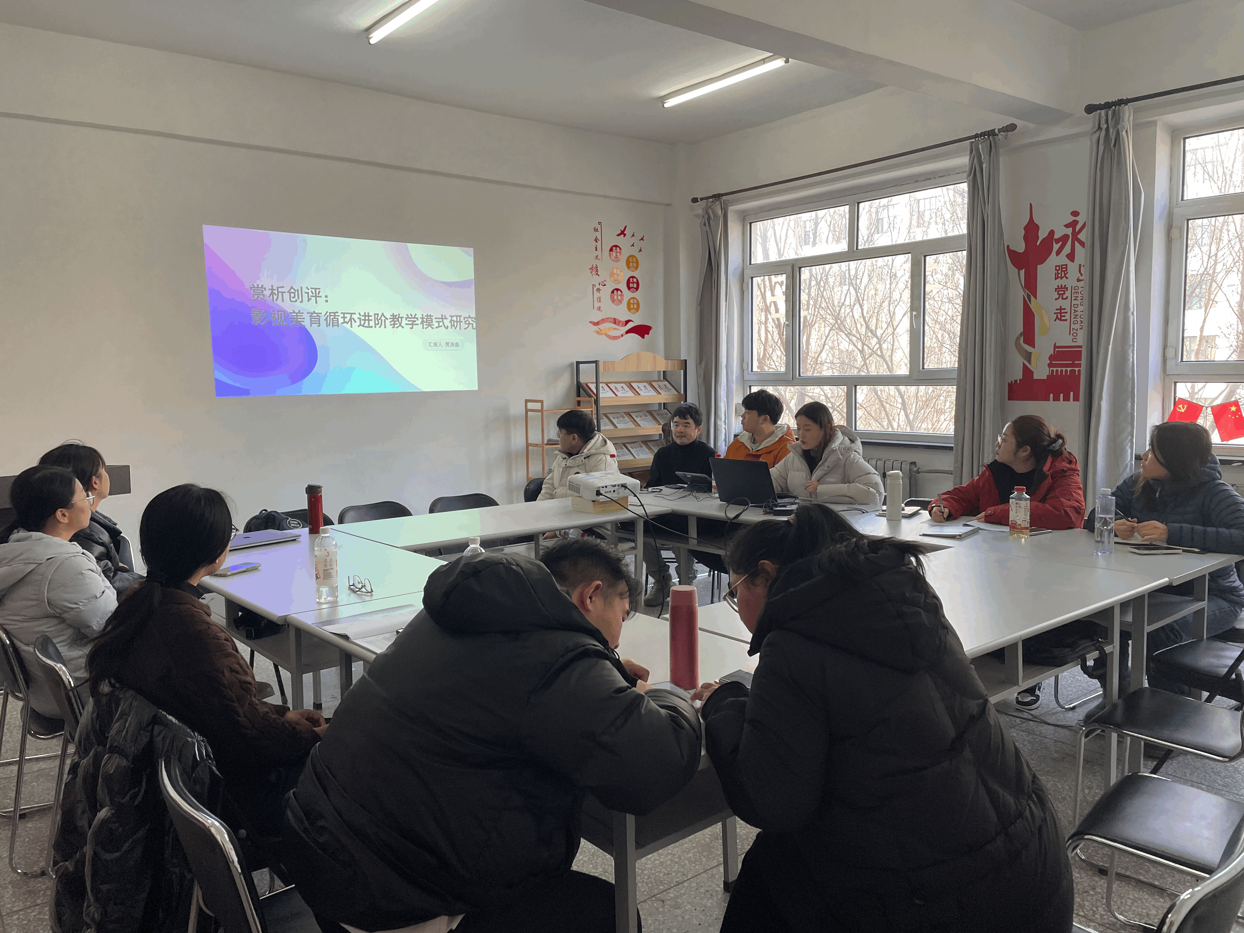 12月3日下午,传媒学院在第三综合楼3417教研室举办本学期第七次教研活动,本次活动以“影视美育循环进阶教学模式”为主题,由贾涛鑫老师主讲,围绕其在影视美育领域提出的“赏-析-创-评”四环节循环教学模式进行了深入分享与研讨。