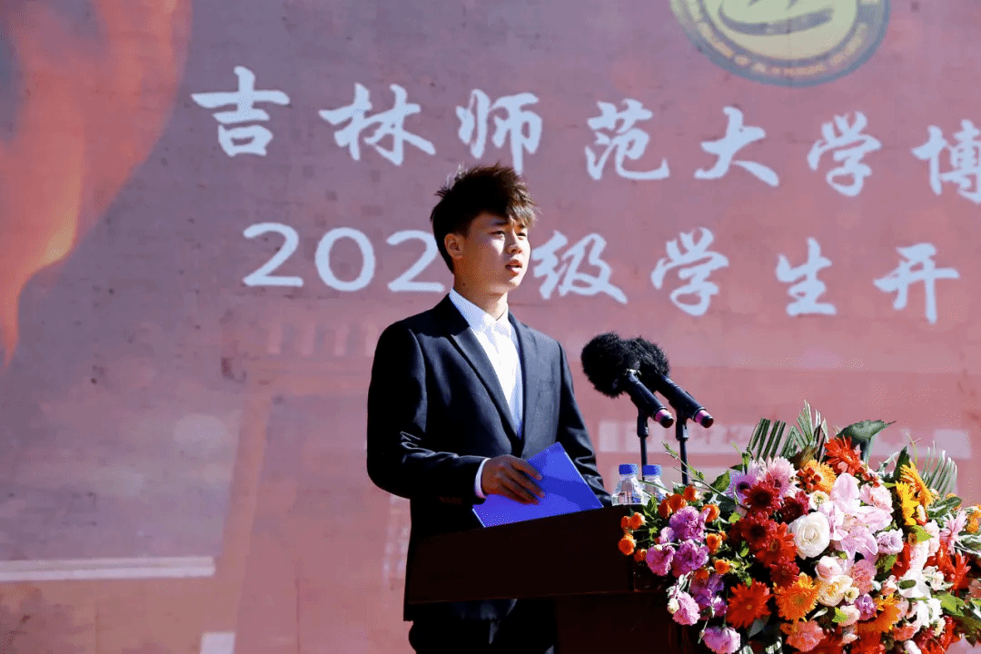 外国语学院2024级侯茗萱代表全体新生发言,立志将努力成为一名信念坚定、朝气蓬勃的博达人,将珍惜这段宝贵的时光,不负韶华,努力学习。