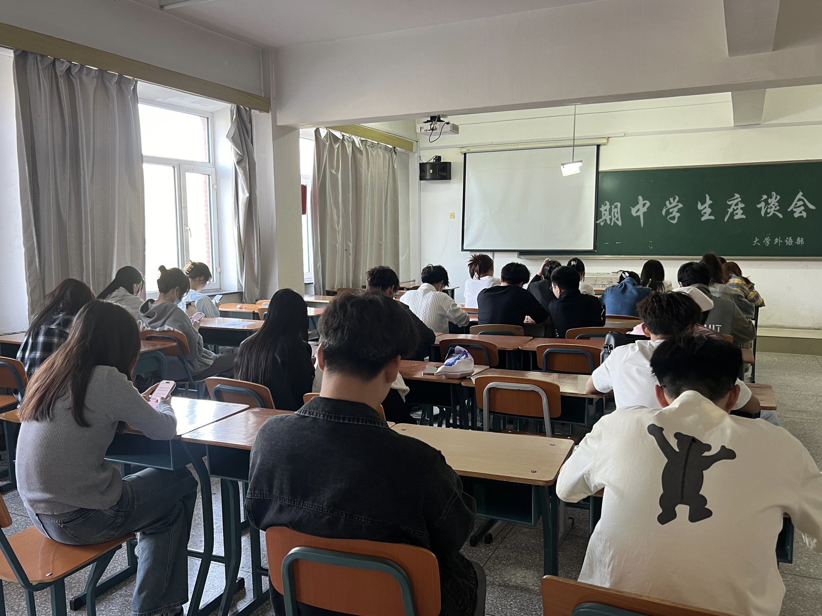2024年5月8日下午3点30分,大学外语部在老校区1307教室召开了2023-2024年学度第二学期期中教学检查学生座谈会。来自学校2022级和2023级的学生代表参加了此次座谈会。座谈会由大学外语部毕馨月老师主持。