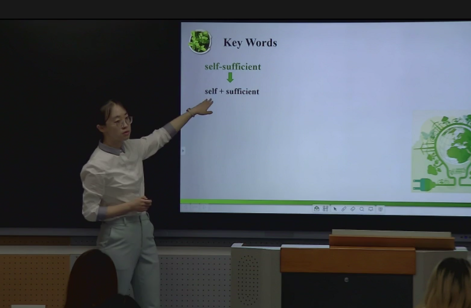 崔煜婕老师讲授的单元主题为Living Green,课文的题目为Living Off the Grid: How a Family of City-Dwellers Discovered the Simple Life。崔老师从教学对象、教学时长、教学模式、教学目标、教学过程等几个方面阐述了自己的教学设计,要素齐全。在讲课环节,教师选用的POA教学模式和方法较好地呼应了其教学目标。整个教学过程贯穿了过去、现在和未来,展示了教师宽阔的视野、发展的眼光,也引导学生将课文所讲述的绿色生活主题放在历史长河中去理解,形成宏观、开放和向前的格局。