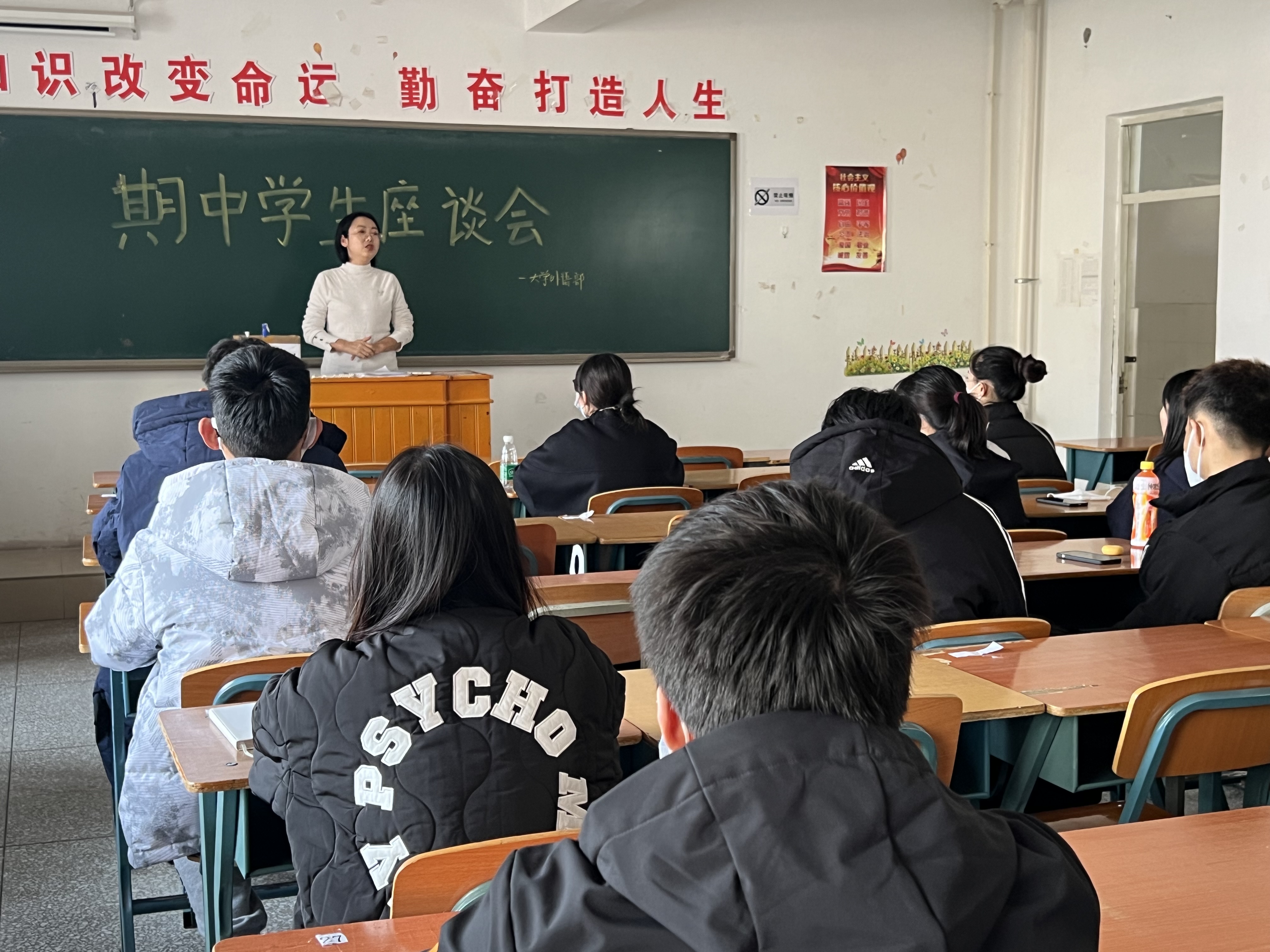2022年11月9日下午1点30分,大学外语部在老校区1316教室召开了2022-2023年学度第一学期期中教学检查学生座谈会。来自学校2021级和2022级的学生代表40余人参加了此次座谈会。座谈会由大学外语部崔惠茹副主任主持。