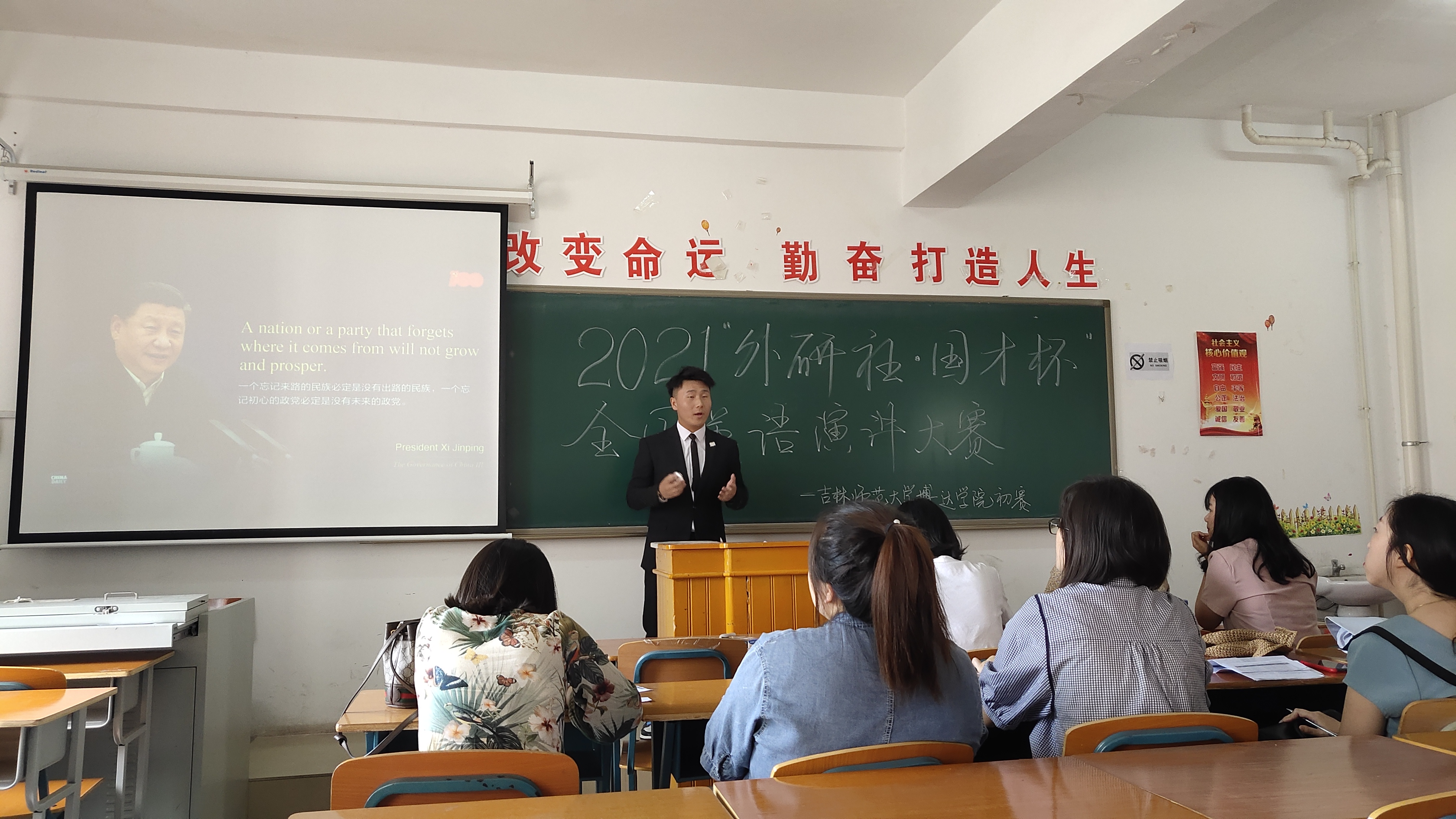 2021年6月16日下午1点,2021“外研社·国才杯”全国英语演讲大赛博达赛区初赛在老校区第一教学楼1316教室举行。通过筛选演讲稿件,最终确定20名选手参加初赛。参赛选手准备充分,依次围绕规定演讲题目“Red Star Over China”进行了3分钟的演讲。选手演讲内容生动,情绪饱满,发音标准且流畅。通过评委打分,最终确定一等奖1名,二等奖2名,三等奖3名。其中荣获一等奖的文学院2020级汉语言文学专业解玉涵将代表我校参加于10月30日举行的吉林省赛区决赛。