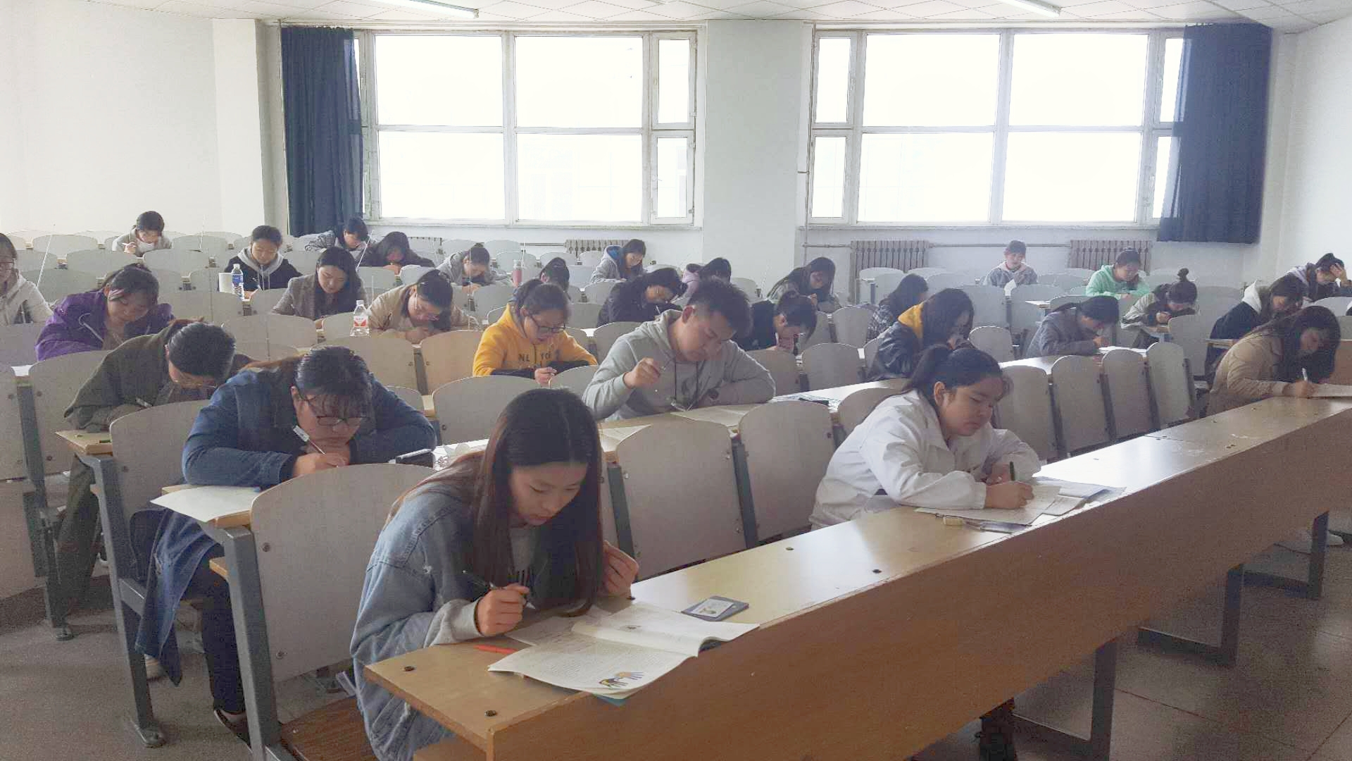 2019年全国大学生英语竞赛初赛于2019年4月14日上午9时拉开帷幕。本次2019年全国大学生英语竞赛博达学院分赛区共有200余名学生参与B类、C类和D类竞赛。参加C类竞赛的同学在吉林师范大学第六教学楼分4个考场同时进行竞赛。听力部分均采用接收机接收调频方式进行考试。参加B类和D类竞赛的同学在博达老校区第一教学楼参与比赛。整个竞赛过程中,考场秩序良好,监考教师严格按照竞赛程序进行操作,学生遵守纪律,认真答题。师生共同维护了全国大学生英语竞赛的公平性和公正性。