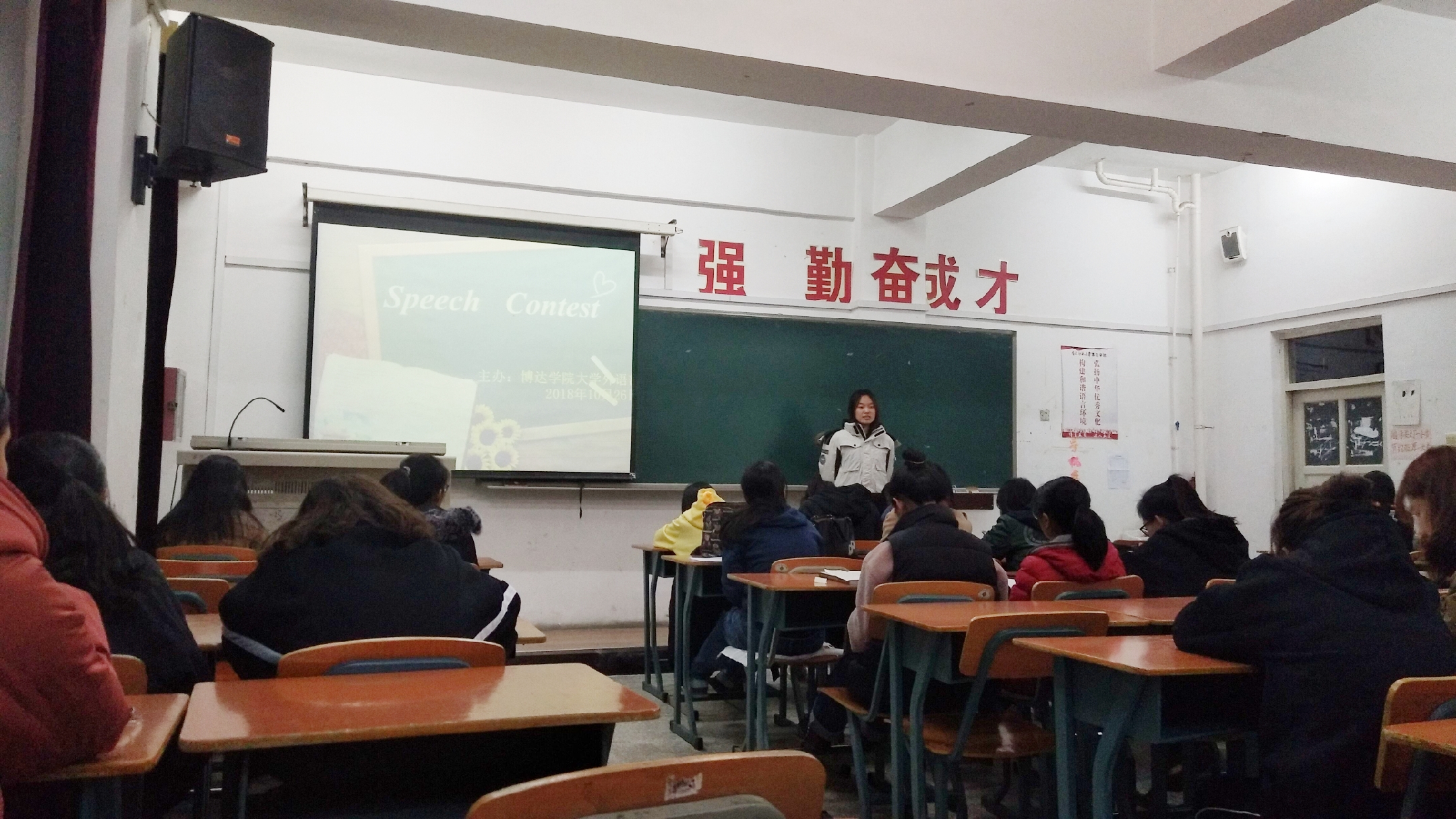 秋风吹拂着我们纯真的脸庞,秋日的暖阳沐浴着我们跃动的心房。伴随着金秋的气息,博达学院大学外语部迎来了2018级英语精英班第二次活动----英文演讲比赛。10月26日晚上6点,意气风发的选手们和满怀期待的观众同学们齐聚老校区1507教室,以演讲的形式诠释了他们眼中的英语学习的真正意义。