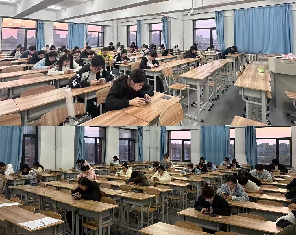 本次比赛自启动报名以来,便受到了同学们的广泛关注,初赛报名人数多达 1200 余人,充分展现了大家对提升词汇水平的热切渴望。4 月 19 日上午 9 点,校赛初赛正式拉开帷幕。经过激烈比拼,最终 120 余名学生凭借出色的表现成功入围省赛。5 月 10 日 19 时,省级竞赛在综合楼 1511、1512 教室拉开战幕。殷雪、周宇鑫老师全程监考,入围学生通过手机线上答题,与吉林省各院校选手展开激烈角逐。