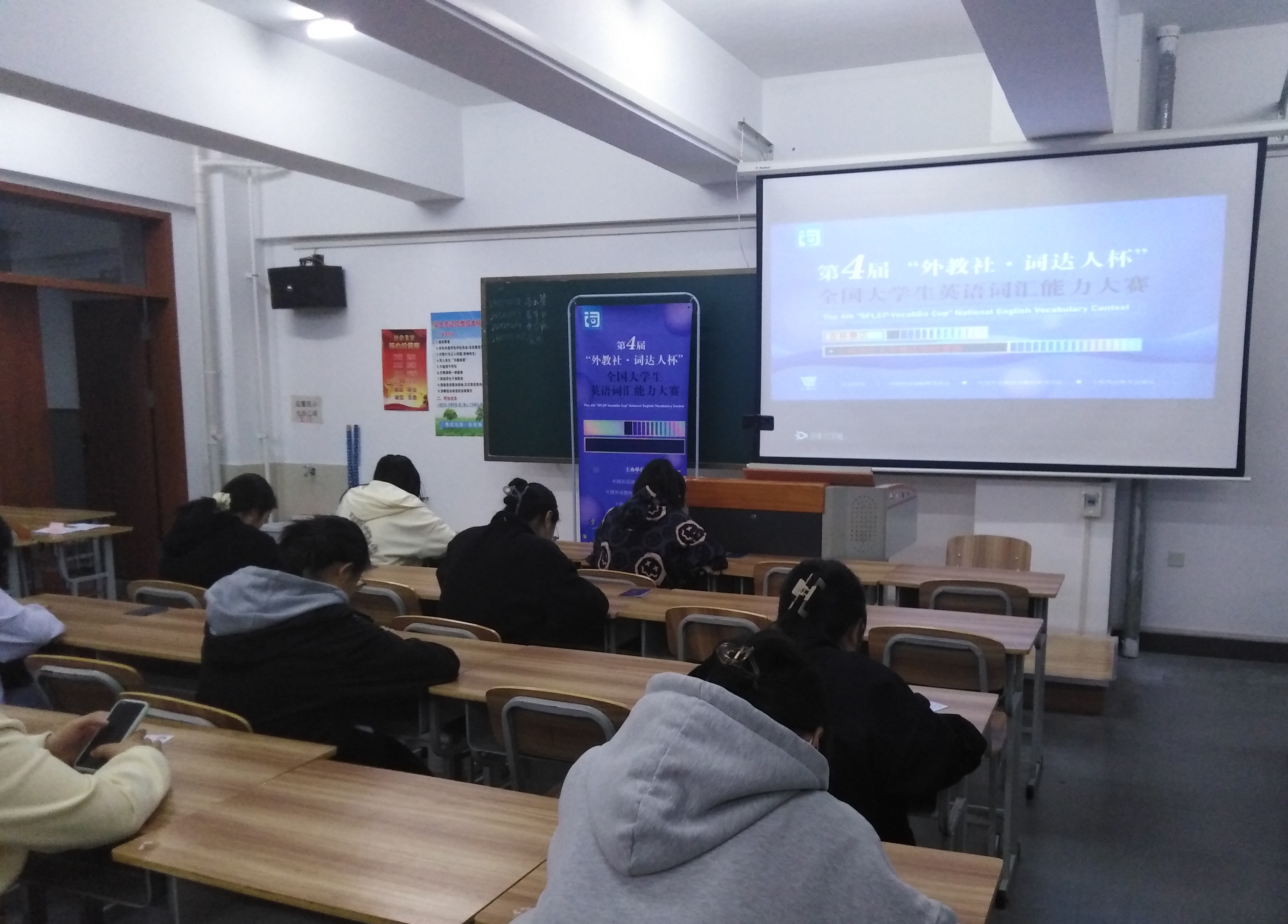 第四届“外教社·词达人杯”全国大学生英语词汇能力大赛省赛由大学外语部与外国语学院联合承办。从4月初启动报名工作以来,大学外语部和外国语学院高度重视比赛,面向全校学生积极宣传组织报名,在4月14日晚7点到8点的校赛中,本科非英语类专业组及高职高专组共有1564人参赛,共有159人入围省赛。