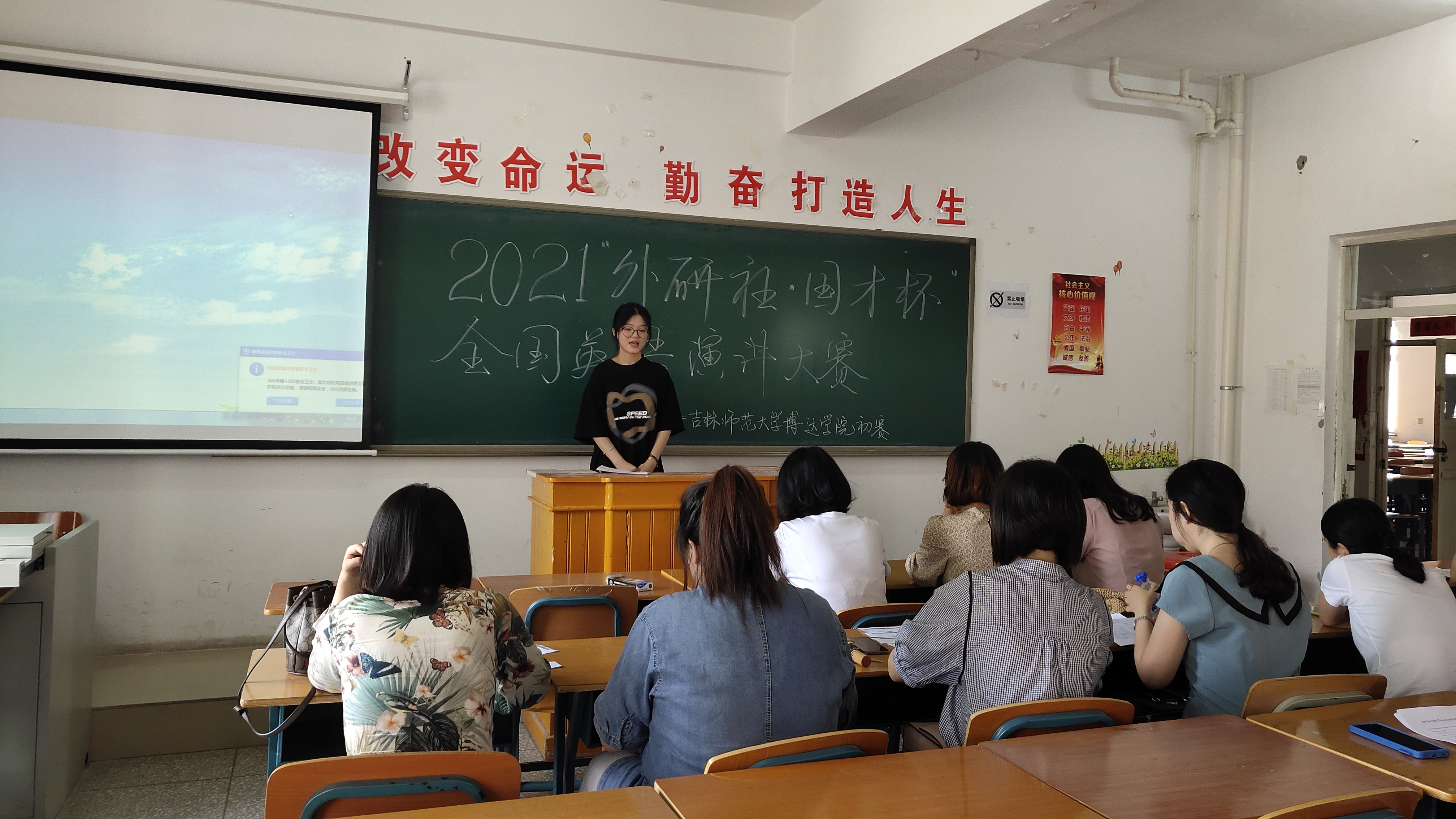 2021年6月16日下午1点,2021“外研社·国才杯”全国英语演讲大赛博达赛区初赛在老校区第一教学楼1316教室举行。通过筛选演讲稿件,最终确定20名选手参加初赛。参赛选手准备充分,依次围绕规定演讲题目“Red Star Over China”进行了3分钟的演讲。选手演讲内容生动,情绪饱满,发音标准且流畅。通过评委打分,最终确定一等奖1名,二等奖2名,三等奖3名。其中荣获一等奖的文学院2020级汉语言文学专业解玉涵将代表我校参加于10月30日举行的吉林省赛区决赛。