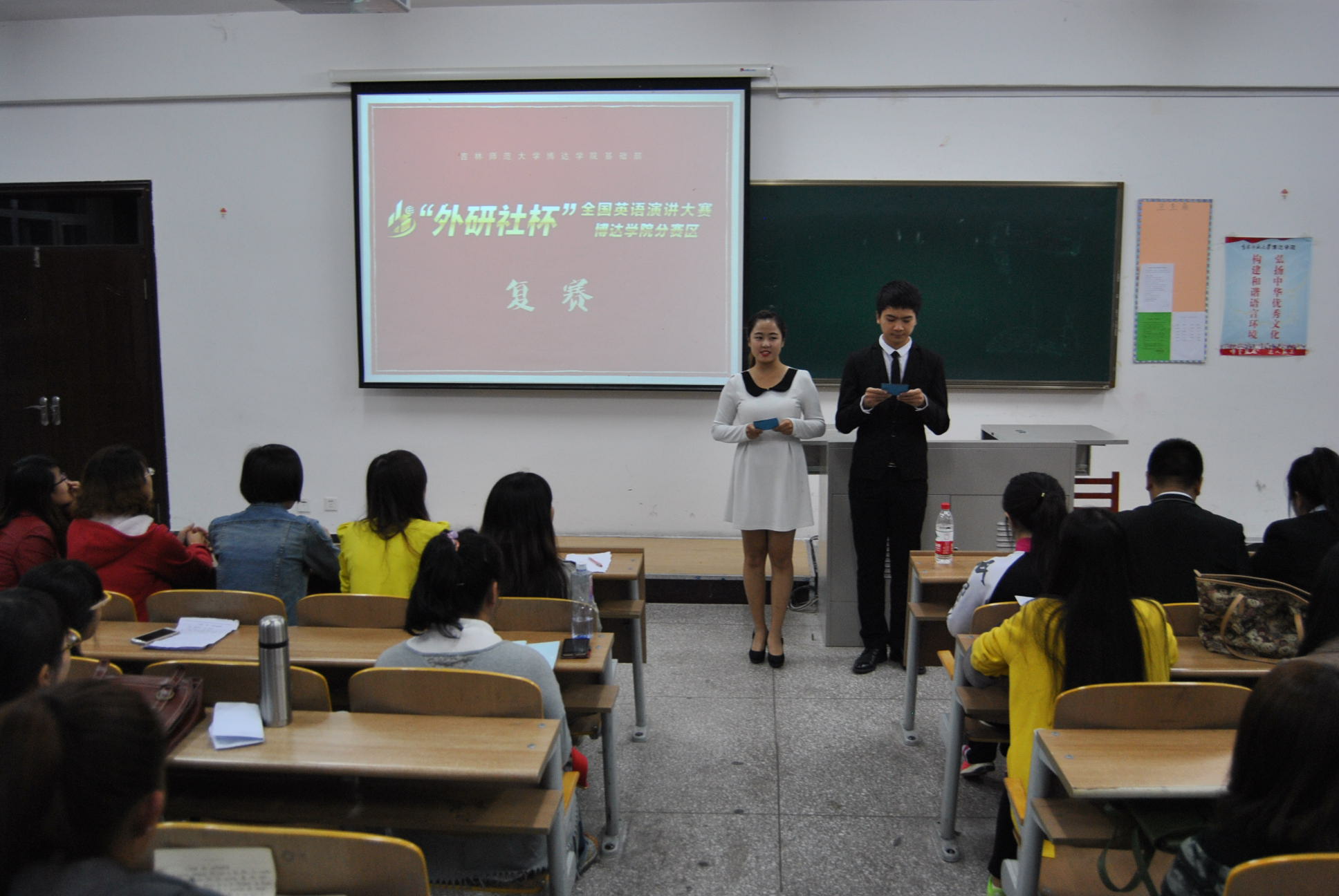 由“外研社”主办、基础部承办、吉林师范大学博达学院社团联合会协办的“外研社”杯全国大学生英语演讲大赛吉林师范大学博达学院赛区复赛于9月24日18时在博达学院3220隆重举行,基础部英语教师以及150名学生代表共同见证了全院10强选手的诞生。此次演讲大赛学院共计2000人参加海选,最终40人进入到了今晚的复赛。复赛演讲的题目为《Change the unchangeable》。选手们演讲风格各异、内容多样,有的气势磅礴、有的温柔细腻、有的深情款款、有的感人至深,可谓百家争鸣、百花齐放。经过近3个小时的激烈角逐,最终吕佳良、霍云雪、李昕、韩晓雪、谭红旭、施思诗、李笛扬、汪倩男、周旭、李春月10名优秀选手成功突围,获得总决赛席位,总决赛将于10月10日进行。