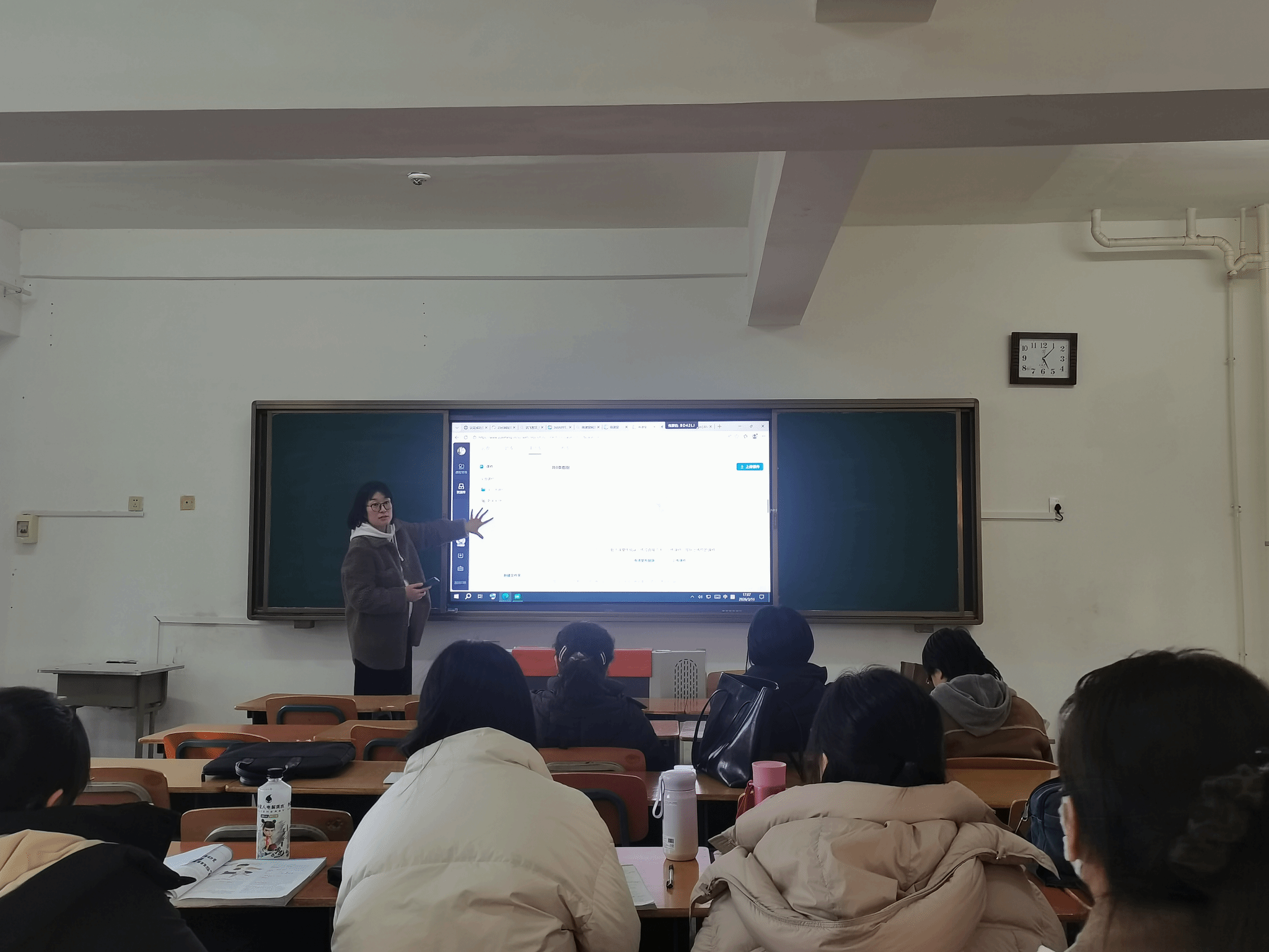 2026年3月11日下午4点,大学外语部全体教师在老校区1316举行教研会议。本次教研活动由闫馨予教师主持,共同探讨如何使用生成式人工智能赋能课堂教学。在课堂互动工具的使用方面,郭彤老师推荐了 Ahaslides网站,该网站可以在教师上传教学PPT之后,使用AI自动生成课堂互动,学生可以扫码参与。鉴于希沃白板的普及使用,徐乐老师分享了相关功能的使用步骤。党冀老师系统总结了雨课堂的操作。刘相杉老师补充了超星学习通如何辅助教学。在教学情景可视化方面,周宇鑫和殷雪老师展示了即梦APP的根据课文内容生成视频功能。在教师工作的其他方面,朱琳老师分享了“金数据 AI考试”网站,胡晶老师分享“讯飞智文”网站如何一键生成PPT为教师拓宽AI辅助教学的资源。崔煜婕、马旭、王镜琦老师展示了如何使用 kimi 、豆包、问卷星等平台,如何AI辅助教师工作。赵悦含老师则在AI辅助科研方面畅谈了独到的心得。