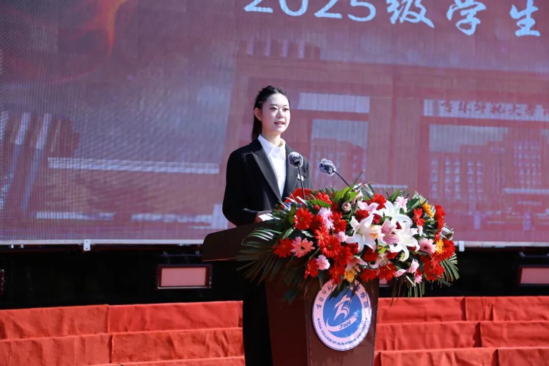 During the ceremony, Executive President Wang Guojun delivered a speech titled “Learning as the Foundation, Striving for the Summit.” On behalf of the university’s leadership and all faculty and students, he extended a warm welcome and heartfelt congratulations to the incoming class. He shared three messages with the students: Pursue excellence in learning—climb the peak of knowledge; Apply learning in practice—climb the peak of competence; Cultivate moral character through learning—climb the peak of virtue.