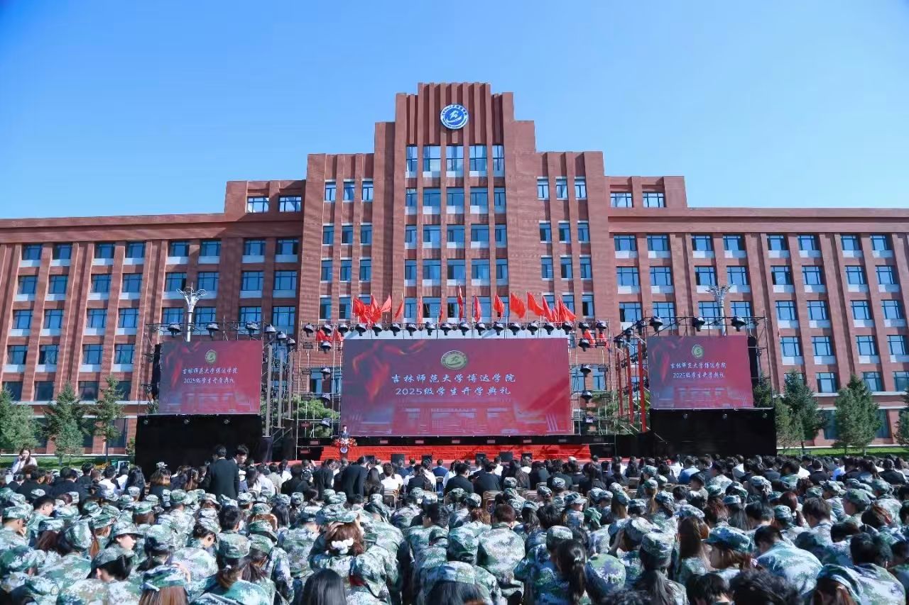 On the morning of September 15, Boda College of Jilin Normal University held the Opening Ceremony for the Class of 2025 in front of the Comprehensive Building. The ceremony began with all faculty members and students singing the National Anthem. The event was hosted by Vice President Zhang Hongyuan, with President Zhang Yong, Party Secretary Zhou Shujun, Executive President Wang Guojun, Deputy Party Secretary Li Ying, and Vice President Xiao Li in attendance. Faculty representatives from all administrative and teaching units, together with all new students of the Class of 2025, participated in the ceremony.