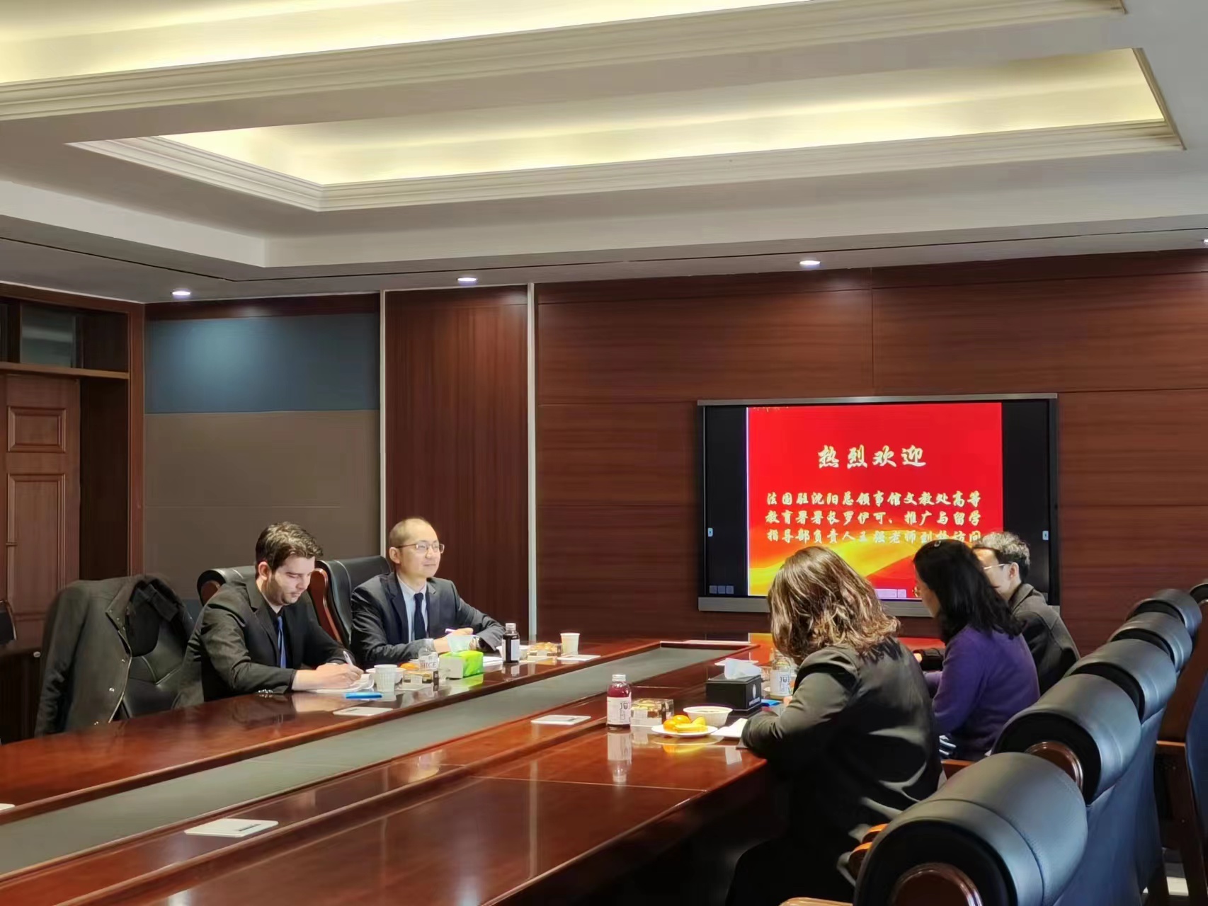 3月16日上午,法国驻沈阳总领事馆文教处高等教育署署长罗伊可、推广与留学指导部负责人王强老师访问我校。国际合作与交流处处长杨慧、外国语学院院长助理冯立群、国际交流与合作处科长王姝航及外国语学院相关人员接待来访。