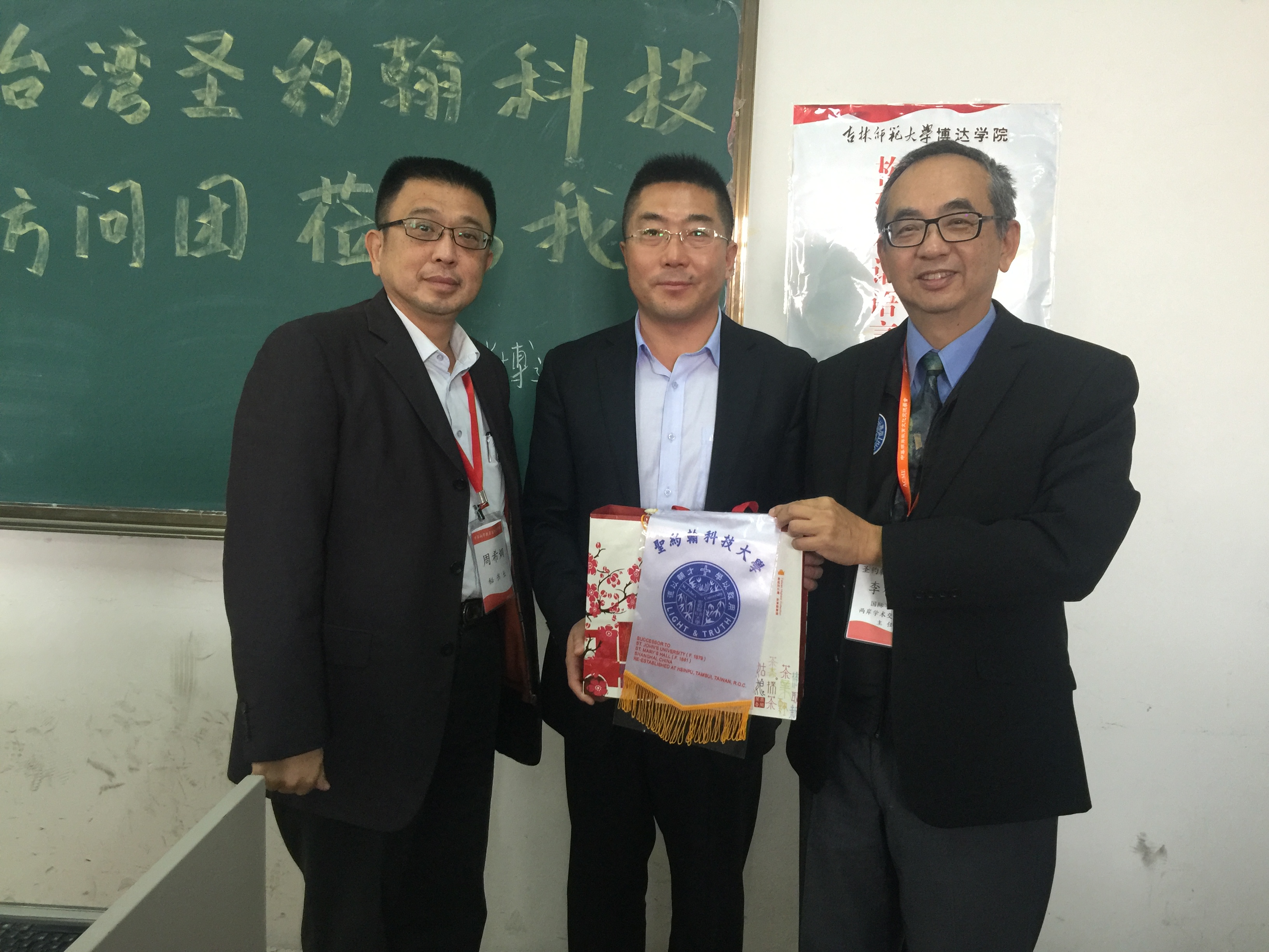 10月10日,台湾圣约翰科技大学两岸学术交流中心李栋梁主任、中华两岸教育文化交流学会周希炯秘书长、中华两岸教育文化交流学会项目专员丁小峰来我院进行访问并举行赴圣约翰科技大学游学宣讲,宣讲会由外事处崔建立处长主持。在宣讲会上,来自台湾的李栋梁主任向同学们介绍了圣约翰科技大学的校园、师资和办学特色等情况,随后就同学们踊跃的提问进行了解答。