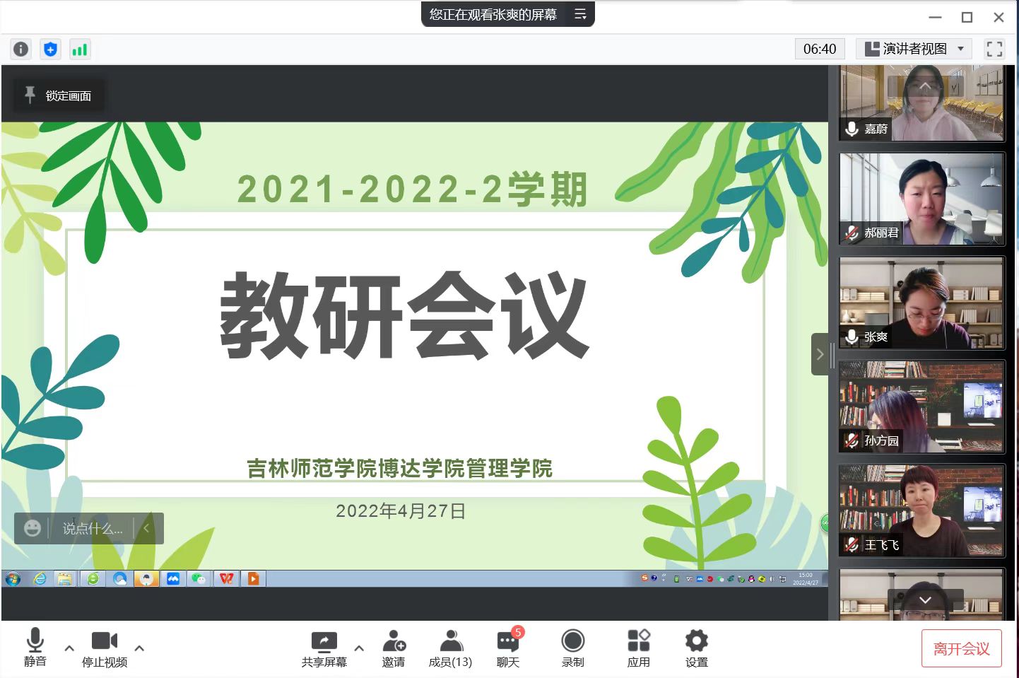最后,赵亚芬院长对会议进行了总结,赵院长指出,很多时候都是教师从自己的角度看学生,很少真正的从学生的角度进行思考,有一些教师的经验和能力达不到可以很好的引领和指导学生。所以会导致学生参加活动不积极的现象。如何做好新时代的“新教师”是大家需要探讨的问题。赵院长对本学院教师们的付出进行了肯定,与此同时也希望大家可以继续思考如何能带动学生主动学习,调动学生的积极性。并指出,现在对学生的教育应该是“扬长”而不是“避短”。赵院长建议扩大参赛的学生覆盖面,要把更多的学生带动起来。