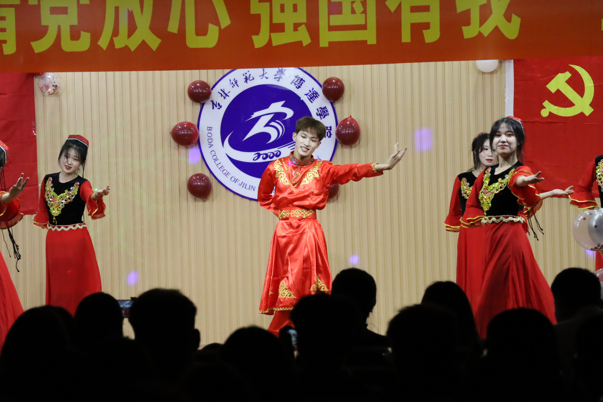 新疆,我有戈壁上万千的石语,对你倾诉;新疆,我有无垠沙漠般的深情,对你表白。民族舞《亚丽古娜》整齐和谐的节律,铿锵优美的舞步,舒展灵活的动作,舞出了青春的活力,舞出了时代的风采,呈现出独一无二的民族风采。