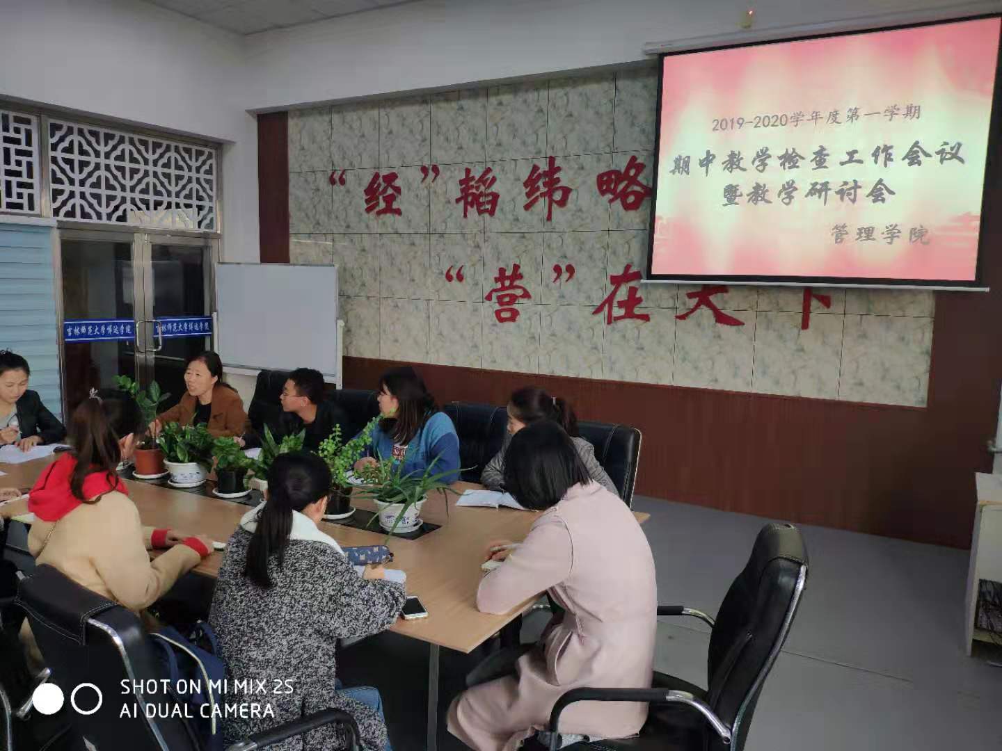 为提升学院教师教育教学质量,广泛听取任课教师对本学期教学中存在的问题及意见,贯彻教务处《关于开展2019—2020学年度第一学期期中教学检查工作的通知》精神,管理学院于2019年10月23日15:30在3607商务谈判室召开了本学期期中教学检查教师座谈会。教务处领导王丽红、苏泳心老师莅临座谈会现场。管理学院全体教师参会,座谈会由赵亚芬院长主持。