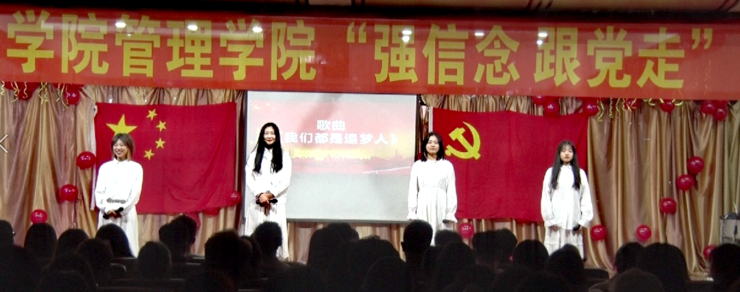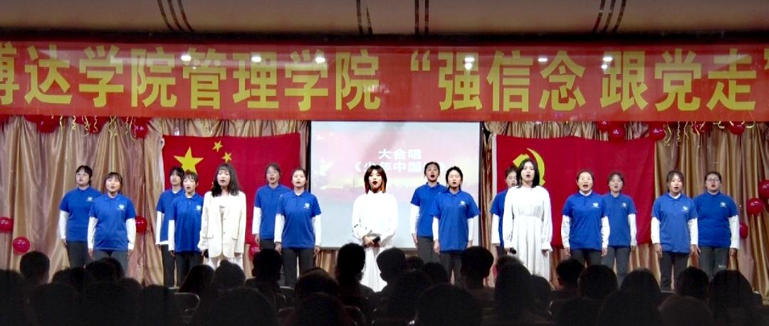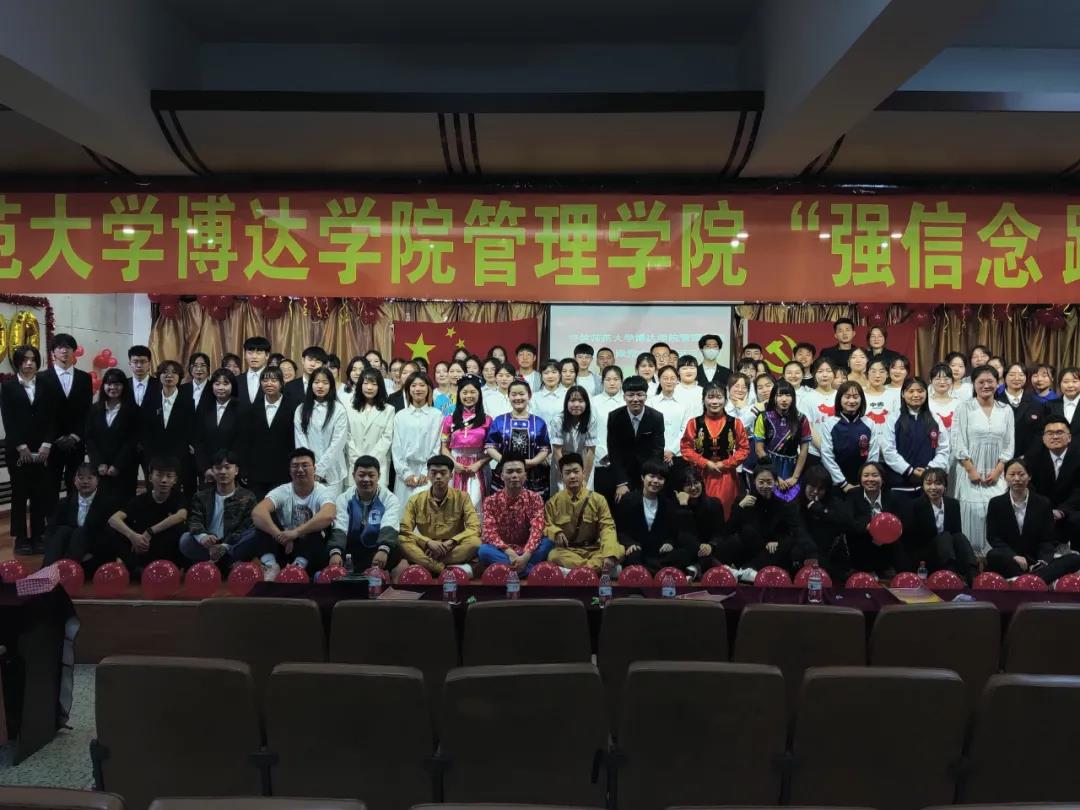 习近平总书记曾强调:“中国共产党立志于中华民族千秋伟业,百年恰是风华正茂。”青年是标志时代的最灵敏的晴雨表,站在中国共产党百年华诞的重要节点上,青年当勇担复兴大任,争做时代新人。为庆祝建党一百周年,进一步引导青年学生厚植爱党、爱国、爱社会主义的情感,让红色基因、革命薪火代代相传,2021年4月14日,吉林师范大学博达学院管理学院于二教六报举办了“强信念 跟党走”主题团日活动。出席本次活动的嘉宾有:管理学院辅导员魏文净老师、张卓老师,各学院分团委副书记、管理学院主席团及各部部长。本次团日活动由2020级的张航、吕浩岩、朱建航和刘思宇主持。