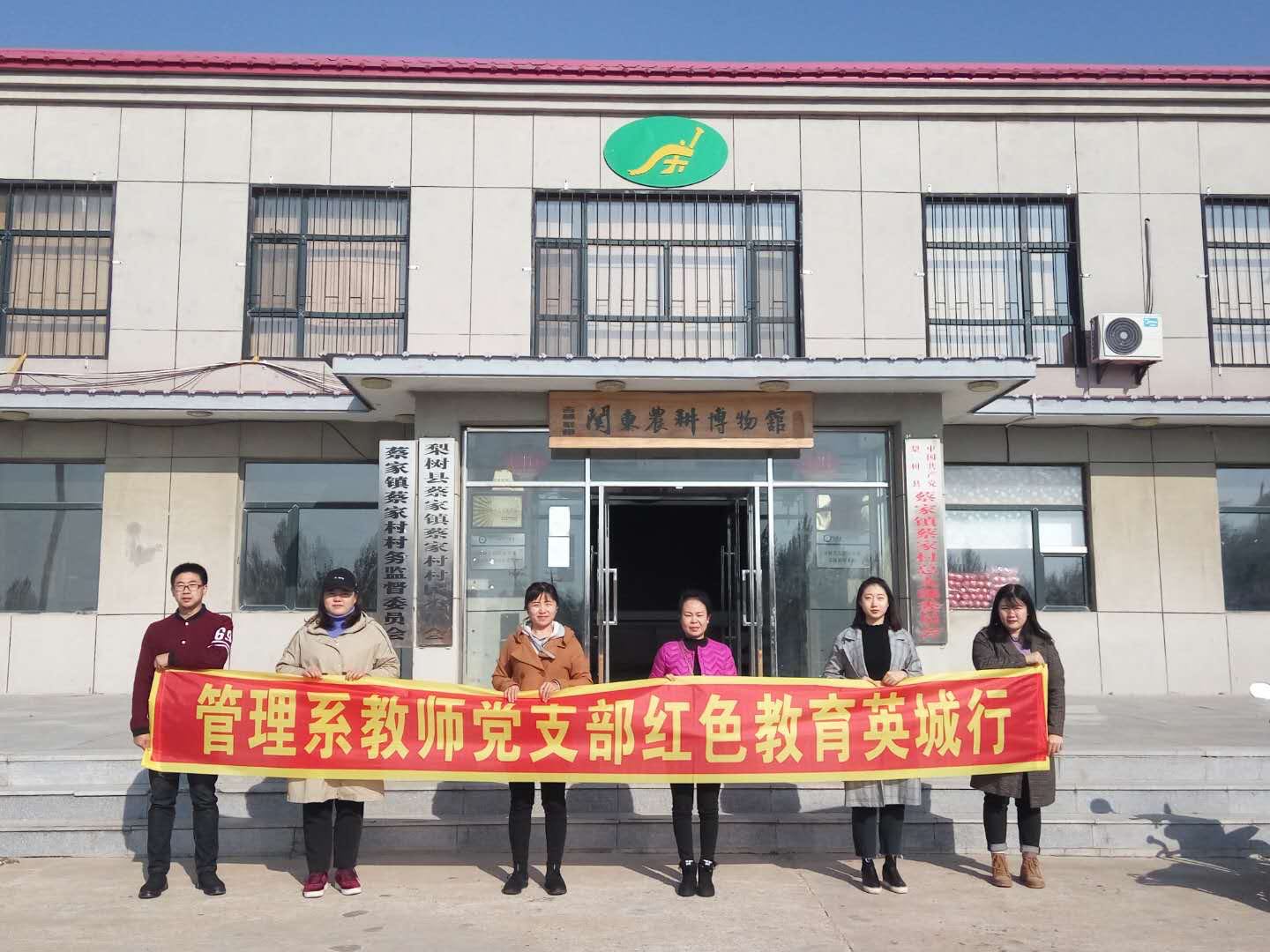为响应党的号召、加强党建知识教育,2018年10月13日,吉林师范大学博达学院管理系教师党支部书记李慧老师携学工办主任耿丽娜老师、辅导员全承志老师和梁婧老师、专职教师张岩老师和慕佼见老师先后去到了关东农耕博物馆和睿鹏红色文化主题教育博物馆开展党建活动。
