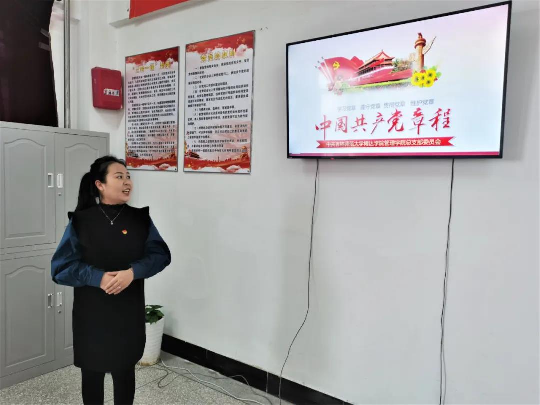 欲筑室者,先治其基。习近平总书记曾明确提出“扎实学习和贯彻党章”的任务和要求。为深入学习贯彻习近平新时代中国特色社会主义思想,巩固深化“不忘初心、牢记使命”主题教育成果,加强党员思想政治教育,坚定党员理想信念,不断提升基层党组织的组织力和凝聚力。近日,吉林师范大学博达学院管理学院党总支于3504党团活动室组织《中国共产党章程》专题学习会,管理学院党总支全体成员参加学习。