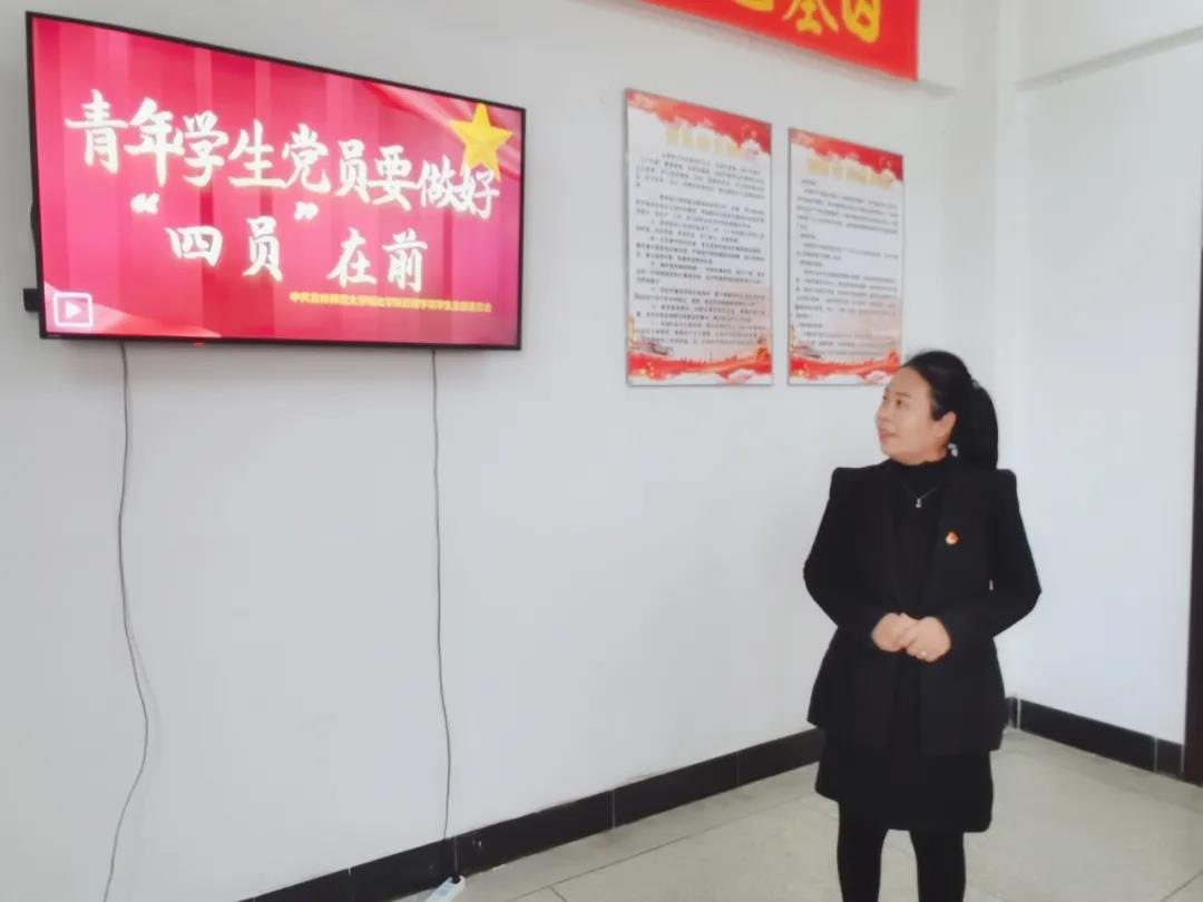 习近平总书记在疫情期间做出重要指示:“让党旗在防控疫情斗争第一线高高飘扬”,强调各级党组织和广大党员干部必须牢记人民利益高于一切。为帮助青年党员更好的明确时代使命担当,增强历史责任感和使命感,从疫情这场大考中汲取坚定向前的力量。吉林师范大学博达学院管理学院党总支积极贯彻落实我校《关于巩固深化“不忘初心、牢记使命”主题教育成果的意见》的重点任务,并于3504党团活动室开展了由管理学院党总支书记耿丽娜主讲的“青年学生党员要做好‘四员’冲锋在前”主题党课,管理学院党总支全体成员参加本次党课。