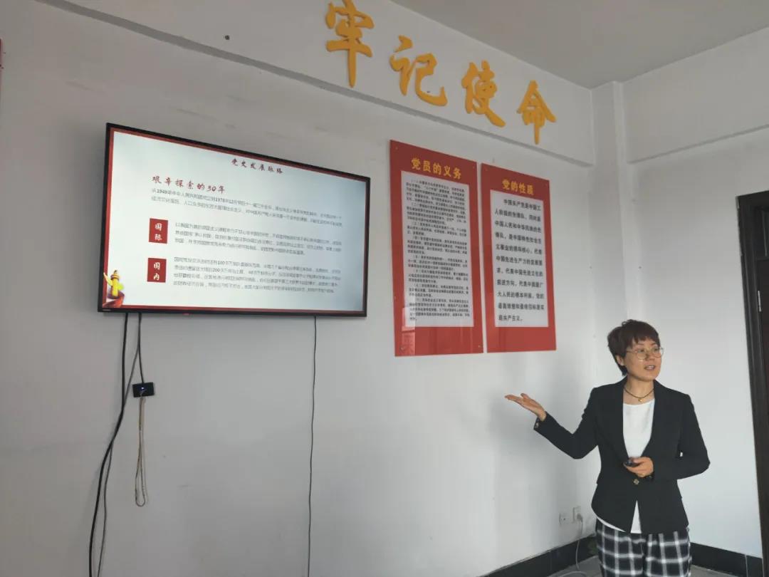 朱琳同志首先向大家系统地介绍了党的百年发展历史以及党的红色基因、红色建设。朱琳同志强调,党的百年发展历史,就是一部为人民奋斗、为人民谋复兴的历史,中国共产党人始终秉持为人民服务的根本宗旨,才能永葆青春,才能茁壮成长。随后,朱琳同志向全体党员阐述了自1840年来至新时代以来,中国共产党所经历的磨难与艰辛奋斗历程,通过一系列事件讲述,朱琳同志向全体党员讲述了“历史和人民选择中国共产党领导中华民族伟大复兴的事业是正确的、中国共产党领导中国人民开辟的中国特色社会主义道路是正确的,中国共产党和中国人民扎根中国大地、吸纳人类文明优秀成果、独立自主实现国家发展的战略是正确的”三大启示。以及党“建立了中华人民共和国,建立了一套新的政权、建立了社会主义制度、开辟了中国特色社会主义道路”三大历史贡献。党课最后,朱琳同志深刻地总结了本次课堂学习,她强调我们在新时代下一定要更加努力、更加深刻地学习党史,不忘初心牢记使命,将党和国家的民族复兴伟任担于肩上,撸起袖子,砥砺前行,早日实现中华民族伟大复兴。