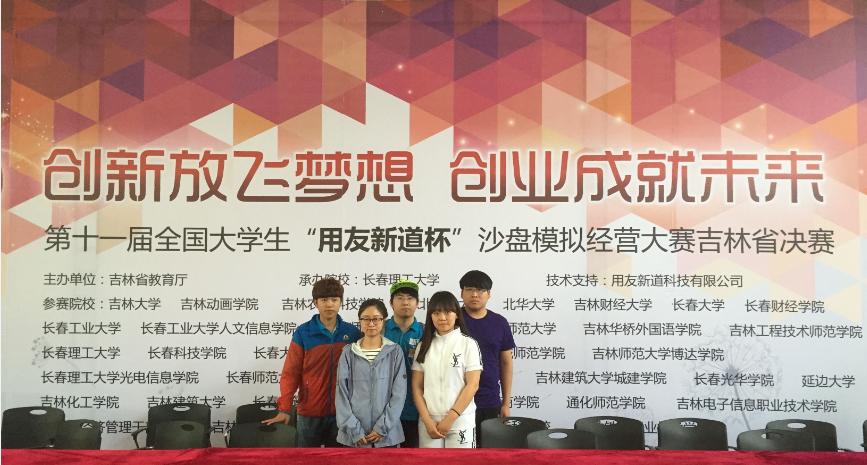 2015年6月5日—7日,由吉林省教育厅主办的“第十一届全国大学生沙盘模拟经营大赛吉林省赛区总决赛”在长春理工大学隆重举行。经过与省内37支本科代表队为期三天的激烈角逐,我院财务管理专业杨志强(首席执行官)、徐安帅(营销总监)、于越(运营总监)、市场营销专业王海宣(财务总监)、陈冰茹(采购总监)组成的EDG代表队荣获本次大赛一等奖,是我院参赛六年来取得的最好名次(总排名第七),为我院争得了荣誉。