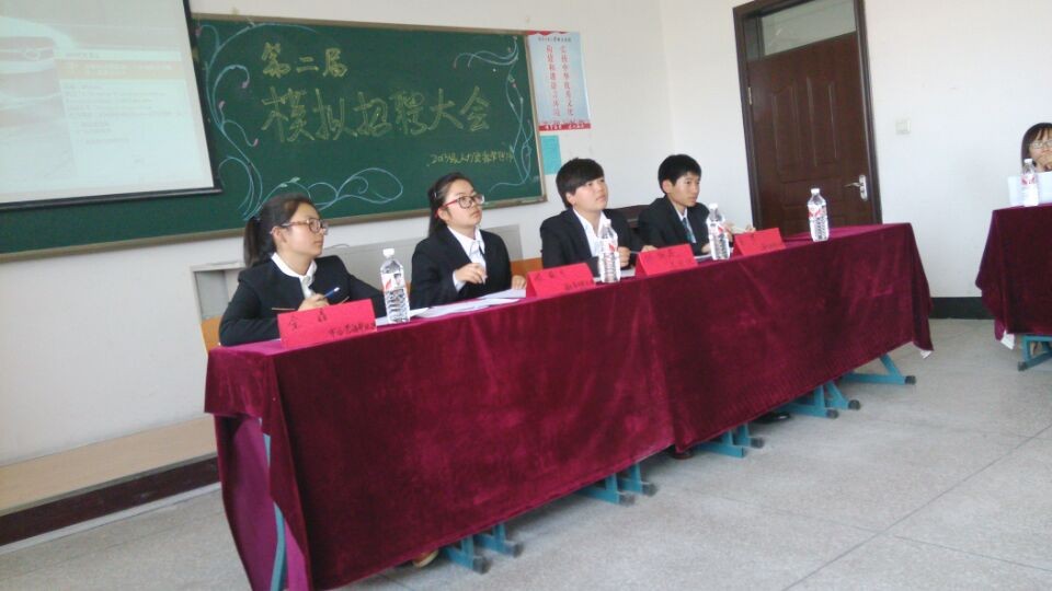 2014年6月4日下午14:00,吉林师范大学博达学院第二届模拟招聘大赛在三教3503教室隆重举行。本次大赛旨在让同学们通过“实战演习”,锻炼自我推销的能力,积累应聘经验。教务处刘源老师、管理系办公室主任张淑萍老师、大一辅导员汤鹏宇老师以及上届学长学姐等作为本次的评委和嘉宾莅临本次大赛。
