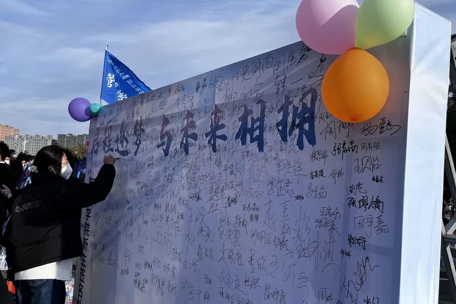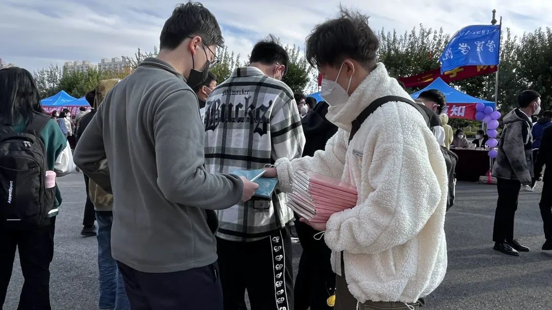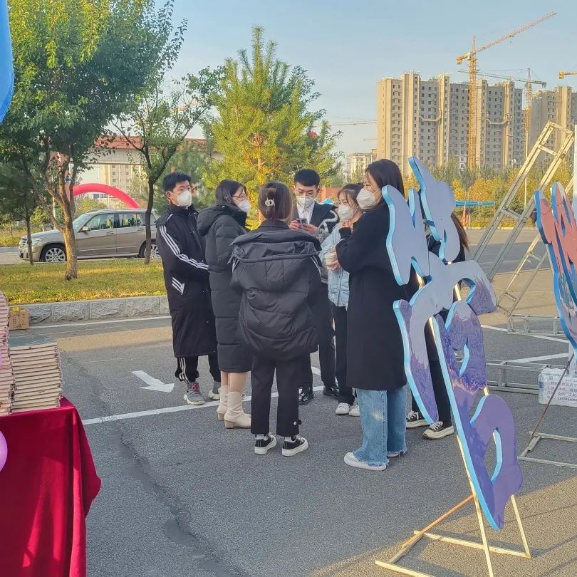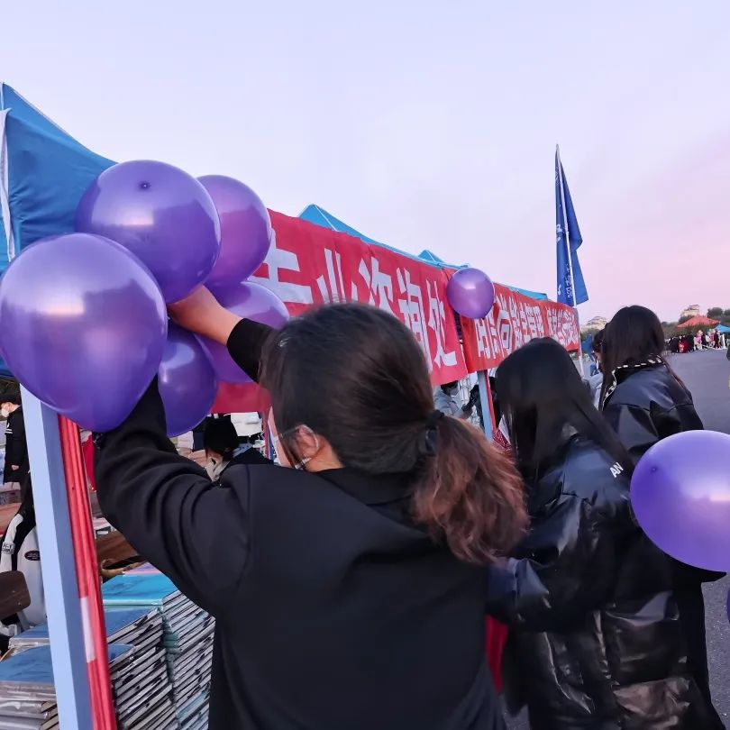 凌晨四点的寒风中,忙碌的背影在璀璨的星光下显得无比伟岸。学长学姐们布置着迎新场地。