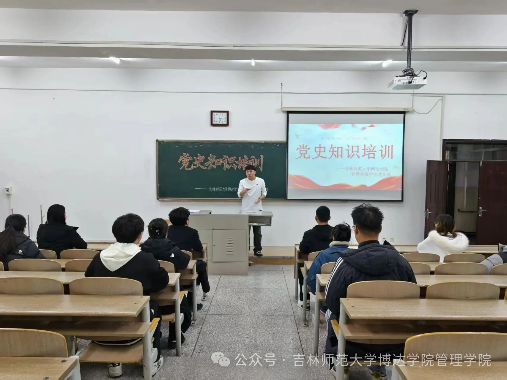 为将党史学习教育成果引向深入,引导全体党员发展对象深学细悟党的创新理论,凝心铸魂筑牢根本,笃行实干担当使命。2025年10月31日,管理学院学生党支部于3520教室召开党史知识培训会。出席本次会议的有辅导员贾琼老师以及管理学院第四十八期全体党员发展对象。
