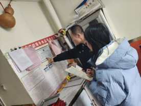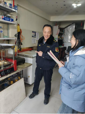 走进商户后厨,她结合财务专业的严谨思维,协助检查设备摆放、卫生管理等细节,同时配合执法人员核对经营资质公示情况,将“精准把控”的专业习惯延伸至实践现场。
