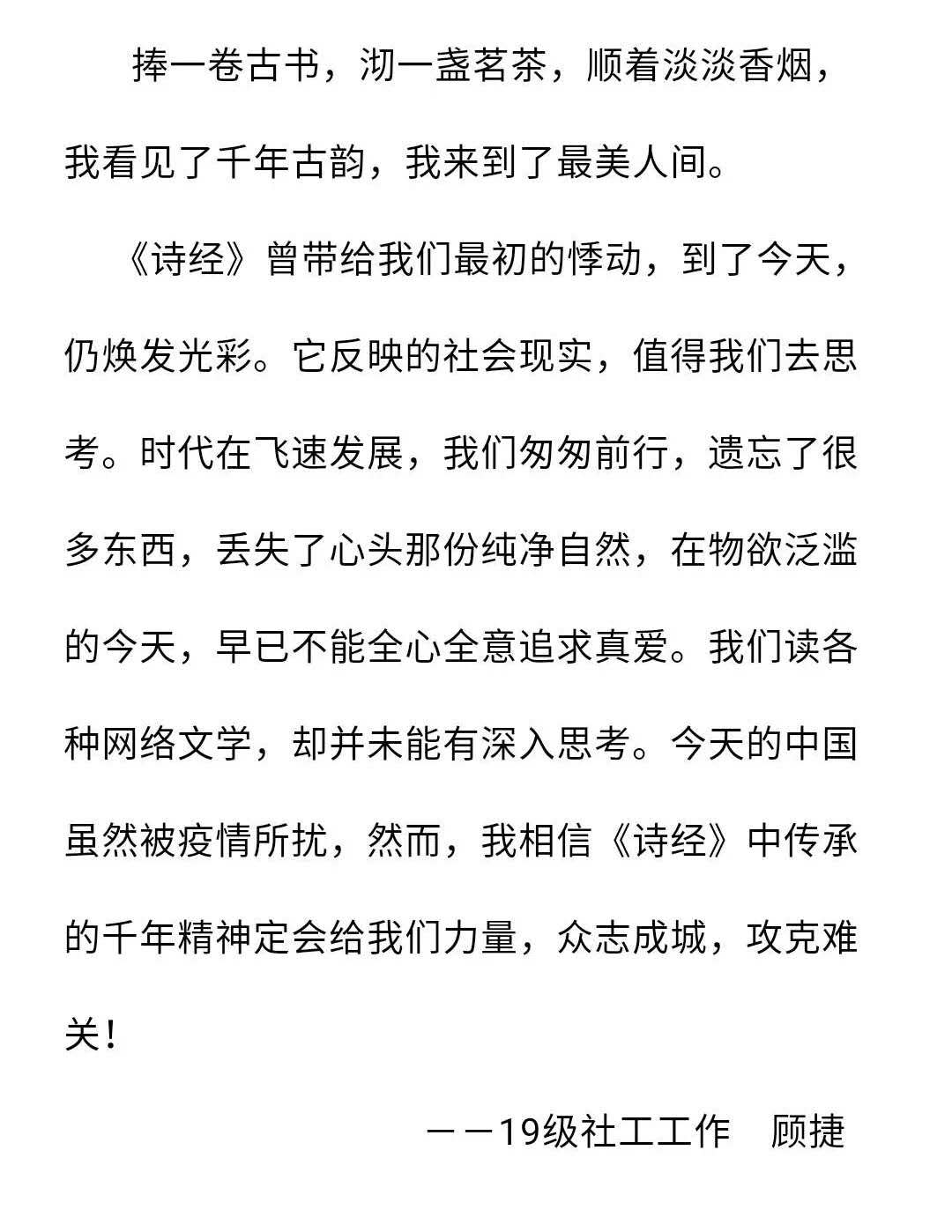 读书能启人心智,丰富人生;读书能积淀学养,指点迷津。管理学院学工办借此活动来培育学生正确的价值观念,学习中华民族在灾难面前所表现出的自强不息、同舟共济、百折不挠的民族精神,引导学生面对疫情要理性表达,不信谣、不传谣、不造谣。疫情期间,我院管理学子们阅读各类书籍,执笔写下心中所思所想,在陶冶个人情操的同时又使宅在家的生活变得充实美好。