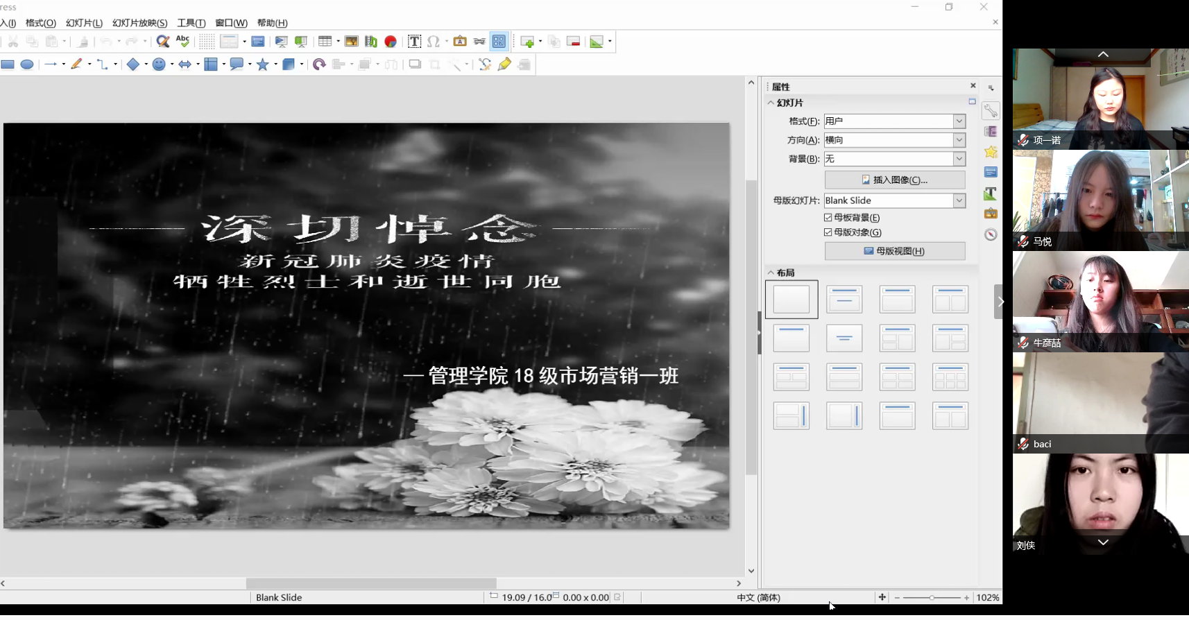 按照国务院决定,2020年4月4日举行全国性哀悼活动。4日上午10时,吉林师范大学博达学院管理学院学工办组织全体学生进行网络云端默哀仪式,表达全体师生对抗击新冠肺炎疫情斗争牺牲烈士和逝世同胞的深切哀悼。