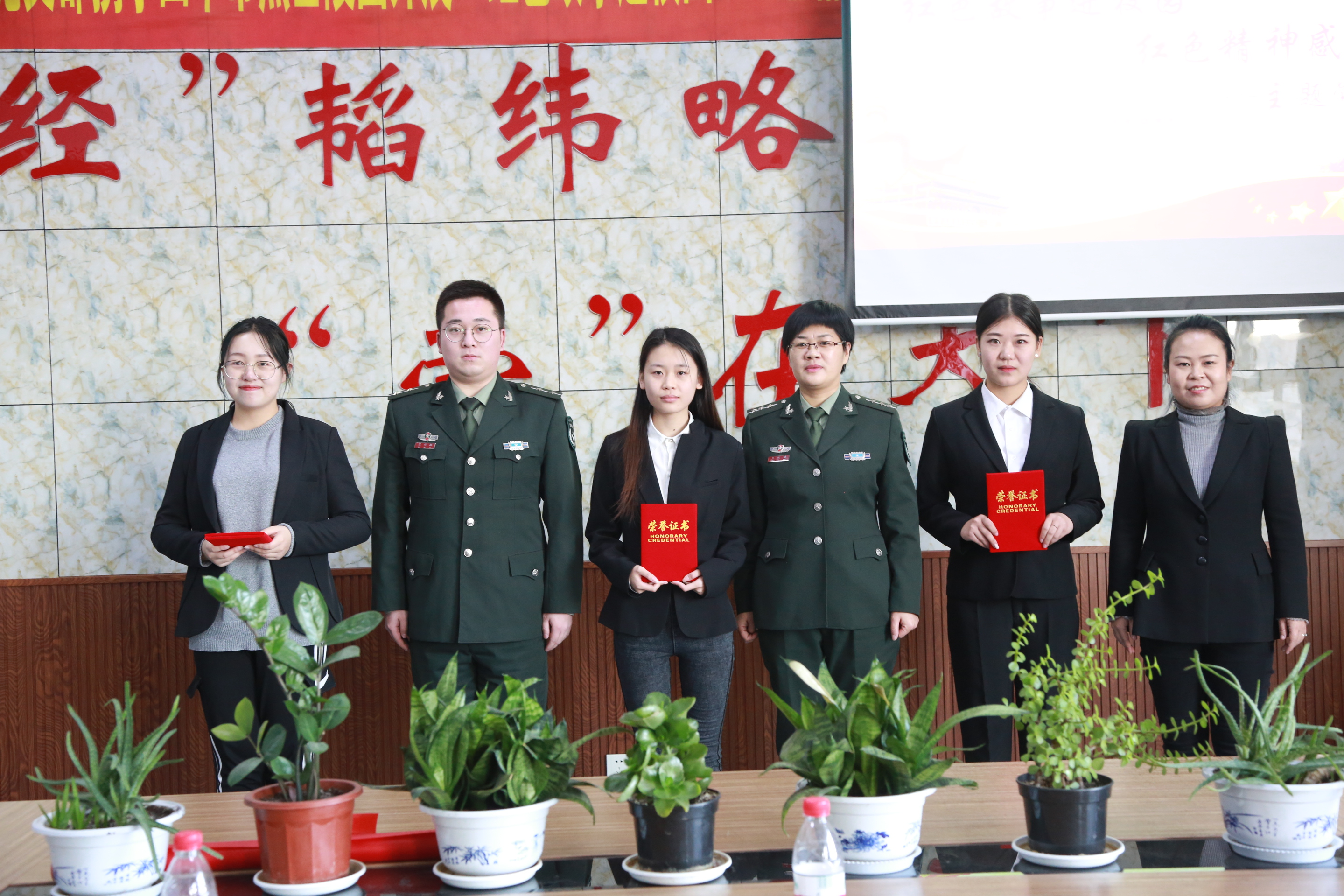 随后是2019年优秀大学生志愿讲解员颁奖仪式,2019年徐美琪和付楠楠同学作为大学志愿讲解员共参加烈士陵园讲解十余次,同时受到了烈士陵园领导和社会广大群众的一致好评,由四平市烈士陵园管理中心宣教科科长王春为志愿讲解员徐美琪、付楠楠颁奖并合影留念。2020年我们将继续传承红色精神的责任与担当,利用四平红色资源开展红色文化育人系列活动,未来将继续培养一批新的有本领、有担当的大学生志愿讲解员。