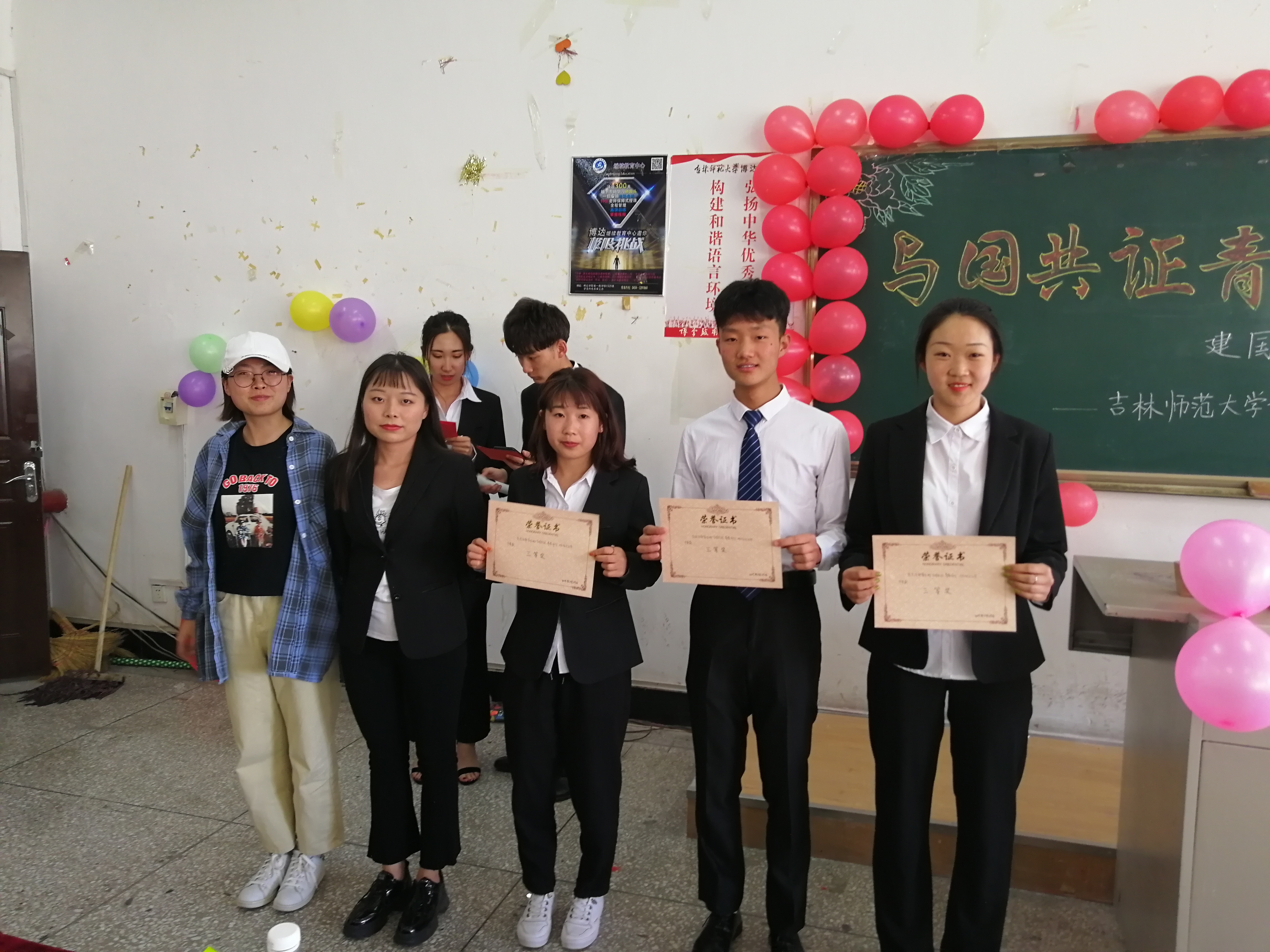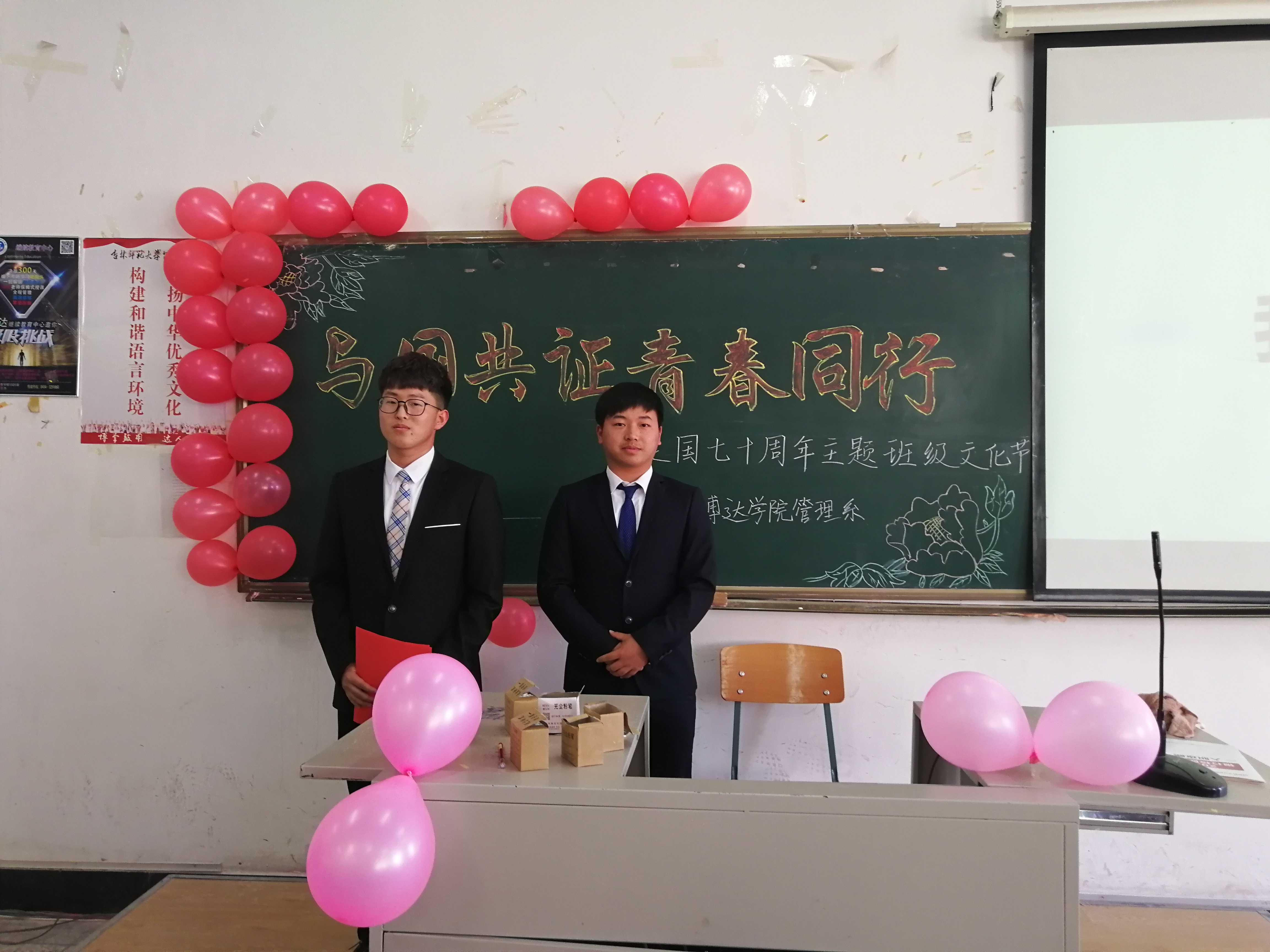 了解学习祖国的发展历程,共同见证我们的奋斗青春,在2019年5月29日吉林师范大学博达学院管理系于3520阶梯教室举办了以“与国共证 青春同行”建国七十周年为主题的班级文化节活动。参加此次主题文化节的有团学联各部门部长和18级管理系各班同学。