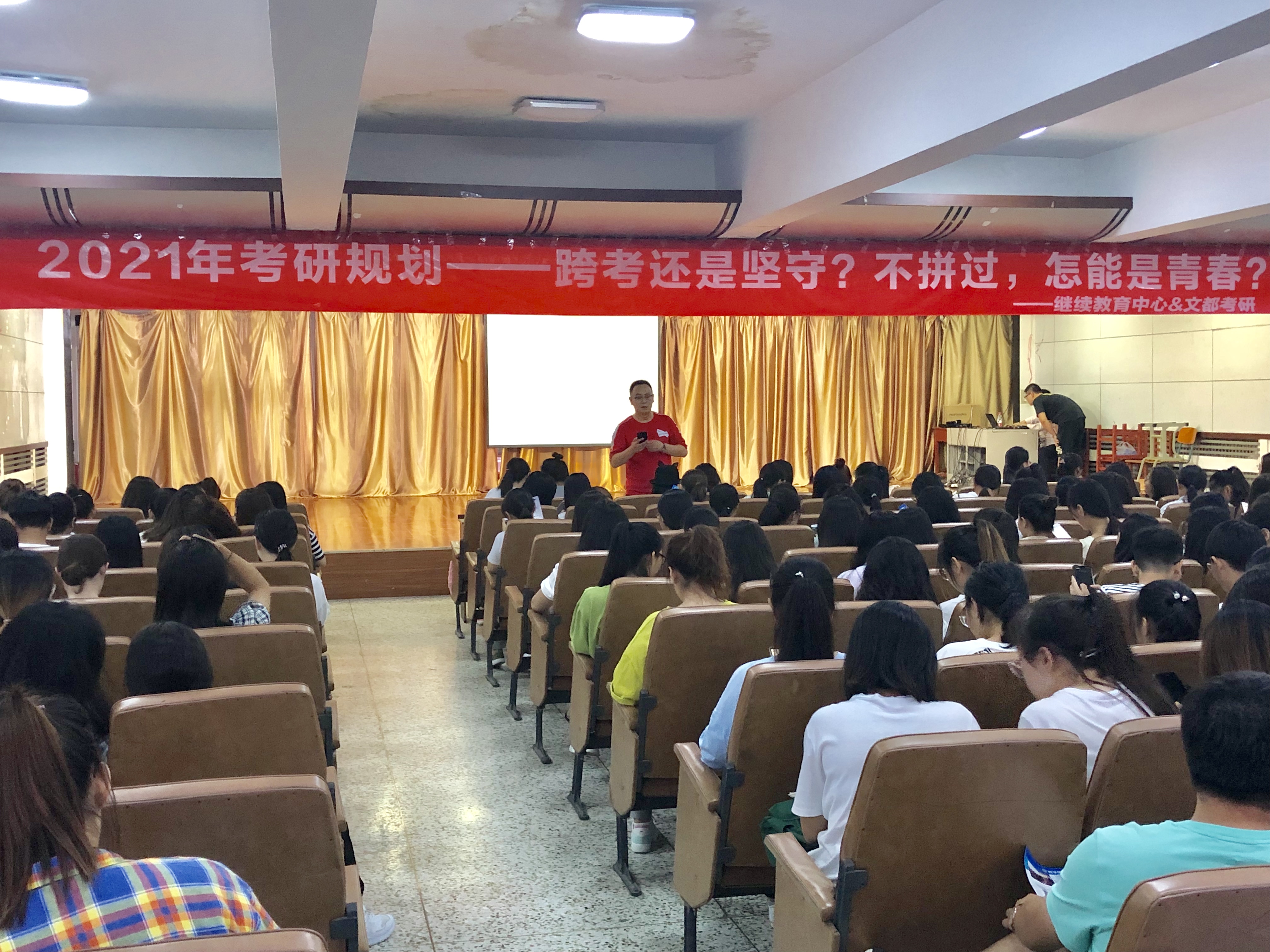 本次讲座由继续教育中心和文都比邻考研联合举办,由文都比邻考研独家考研全程规划讲师、文都比邻教育学考研首席规划讲师——孙锦澜老师面授,为同学们重点讲授考研的重要性、当今的考研形势、相关报名流程、备考注意事项;向同学们介绍如何合理地根据自身情况选择考研方向,如何规划开展复习备考,以及为同学们解决了部分信息不对称所带来的困扰。同时,孙锦澜老师强调“专业与高校的考研选择应当优先考虑专业所带来的就业优势,选择有兴趣的好的专业比选择一所985、211的名牌高校所带来的收益是更多的,选择正确便事半功倍;选择错误则无功有泪”。孙锦澜老师通过幽默风趣的话语,结合自身考研经历和当今考研热点话题,为同学们分层次、分阶段逐一分析。本次考研讲座顺利举行,参与讲座的同学们热情高涨,报告厅中人山人海,部分同学更是在没有座椅的情况下依旧沉浸于老师的讲座之中,同学们认真记录,积极参与和老师的互动,充分体现了同学们对知识的追求和渴望,展现了我校学生的学习风貌。